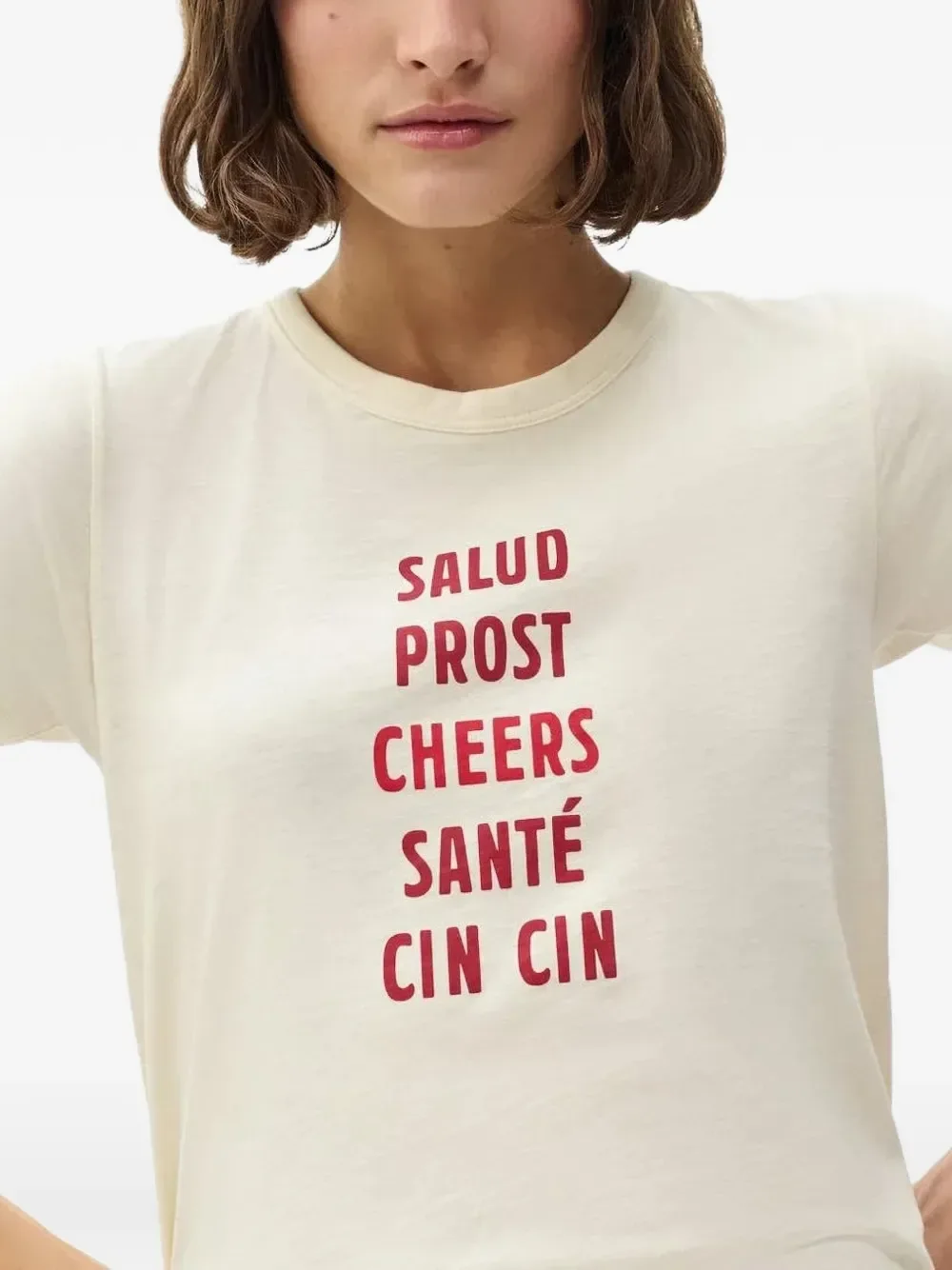 Белая хлопковая футболка с принтом, круглым вырезом и короткими рукавами