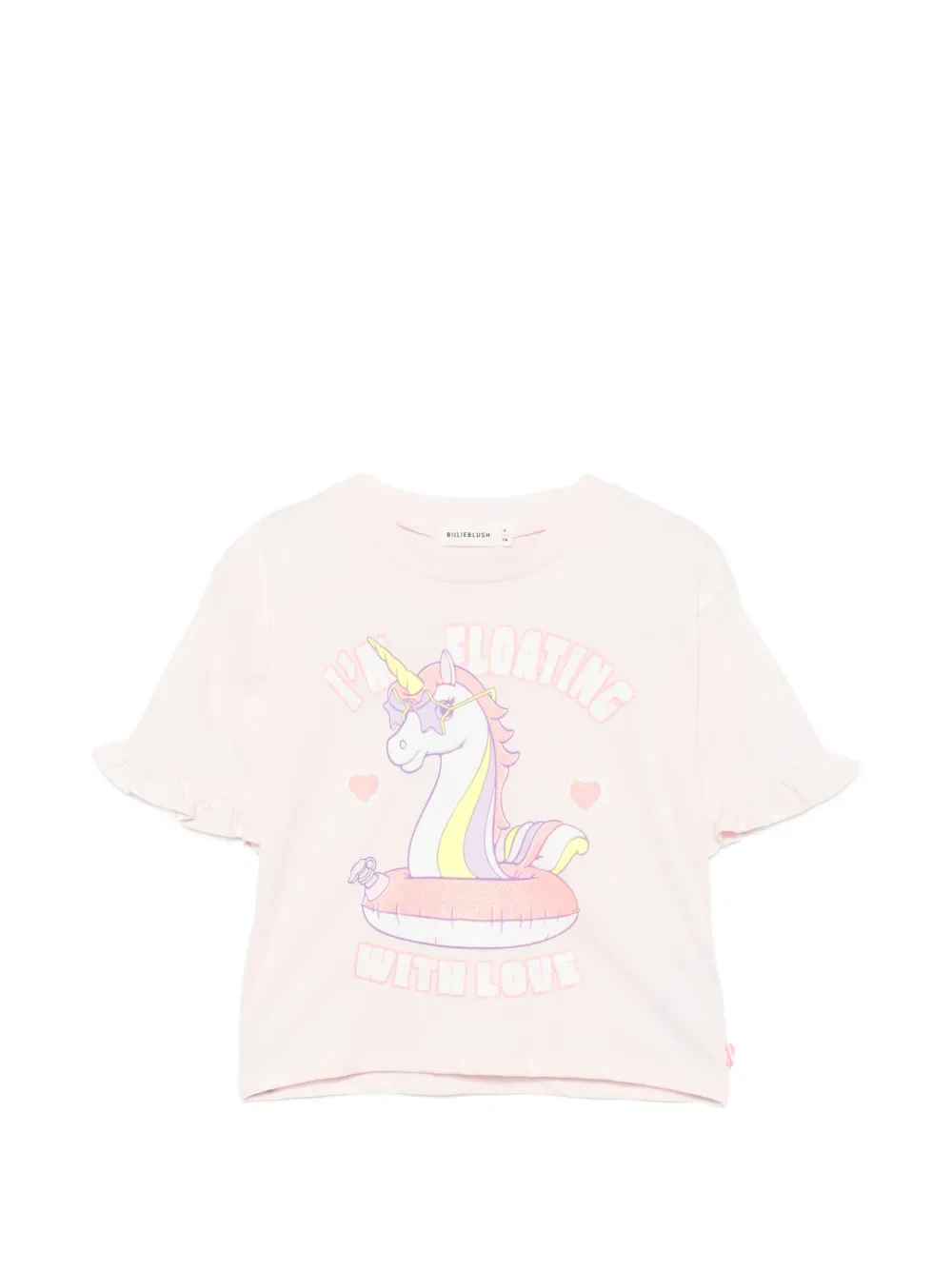 Светло-розовая футболка с принтом, короткими рукавами и оборками