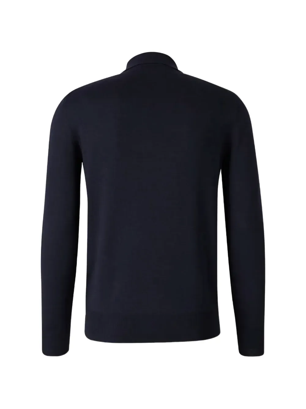 Синий шерстяной джемпер с застежкой на пуговицы, длинными рукавами, воротником пола и трикотажной отделкой