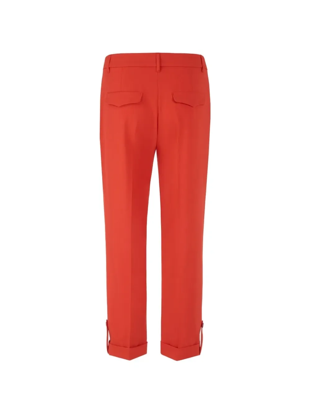 Красные брюки "Аврора" с застежкой на пуговицу, манжетами на штанинах, шлевками для ремня и задними карманами с клапанами