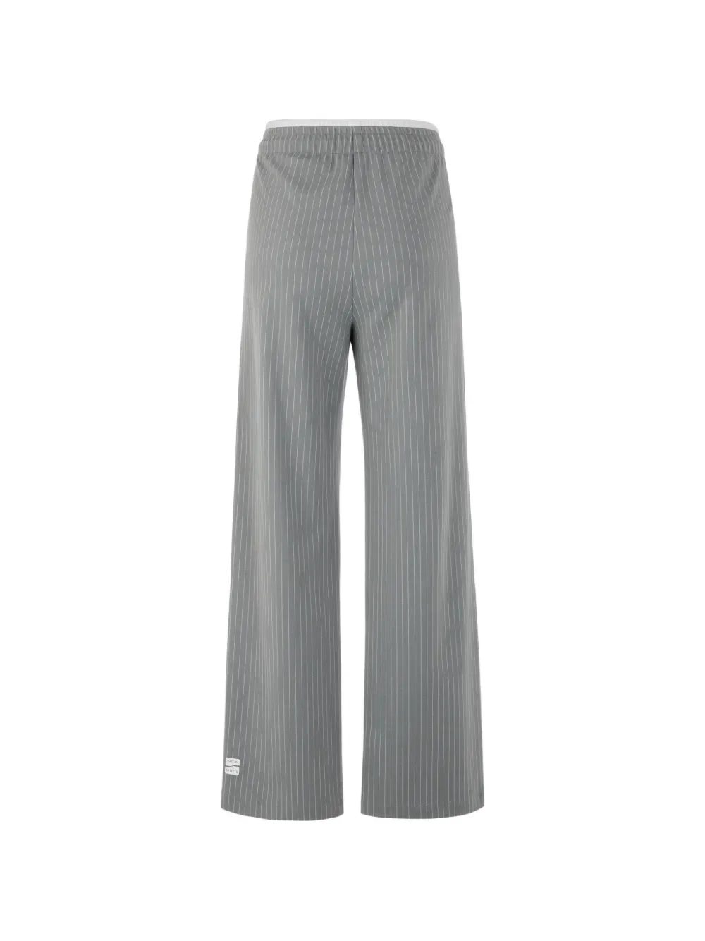Серые брюки прямого кроя с полосатым узором и поясом на завязках