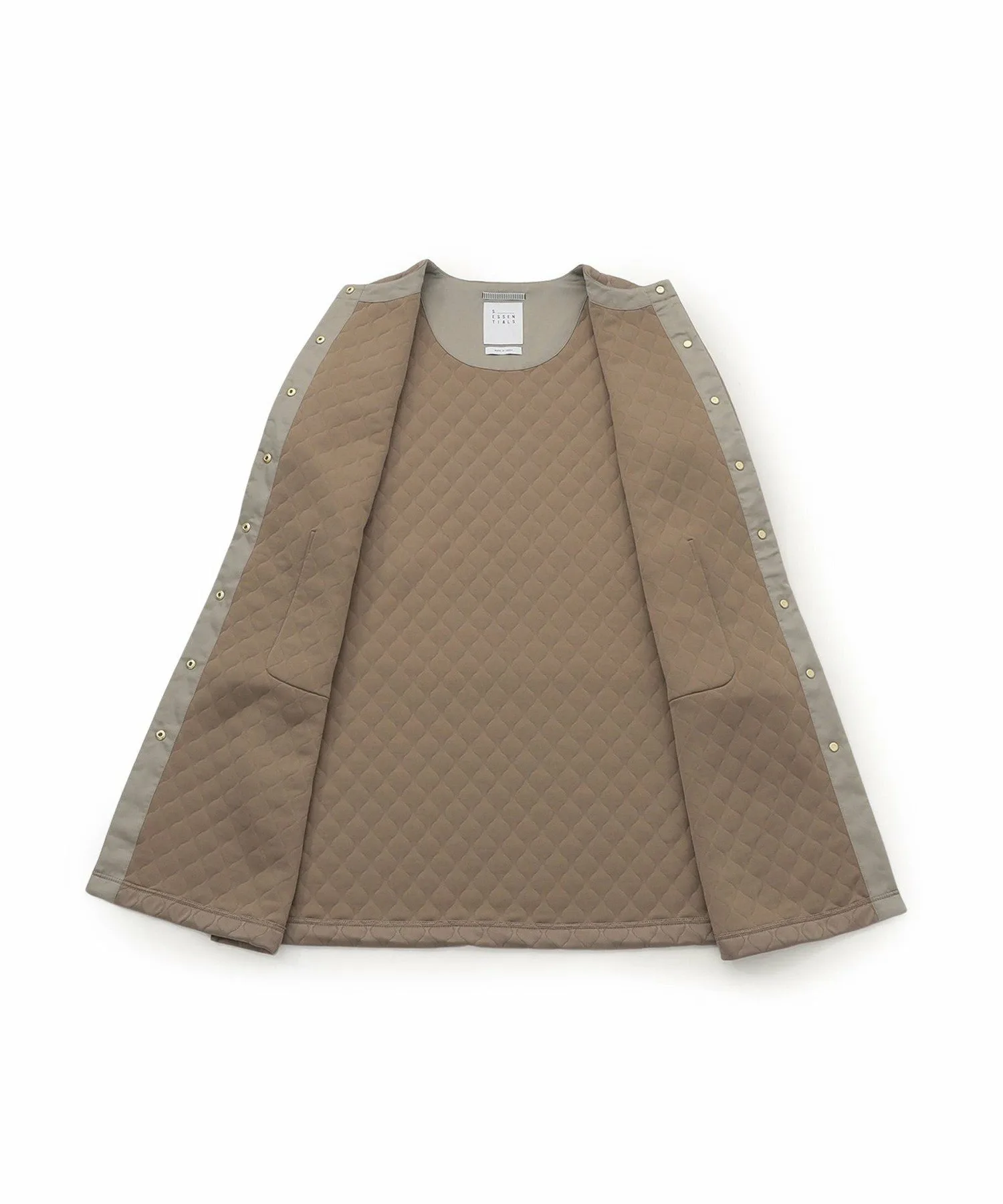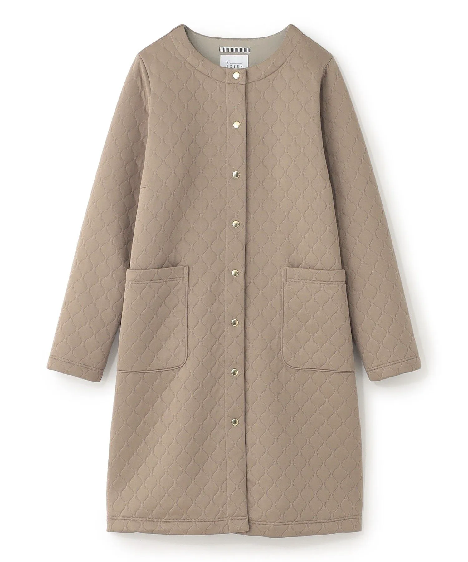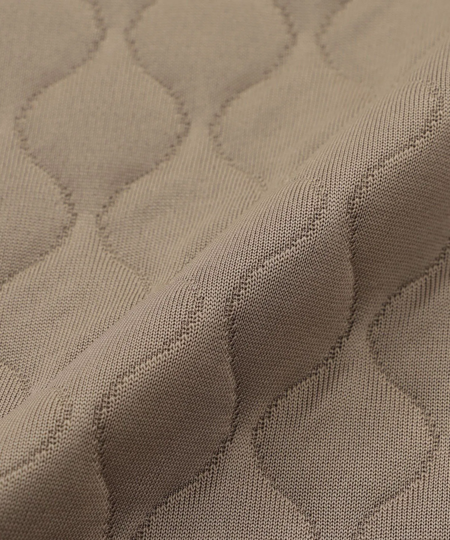 Это пальто средней длины сочетает в себе трехмерную текстуру стеганой ткани с легкостью трикотажа, создавая изысканный образ и оставаясь при этом комфортным, что делает его надежным выбором для переходного периода между сезонами.