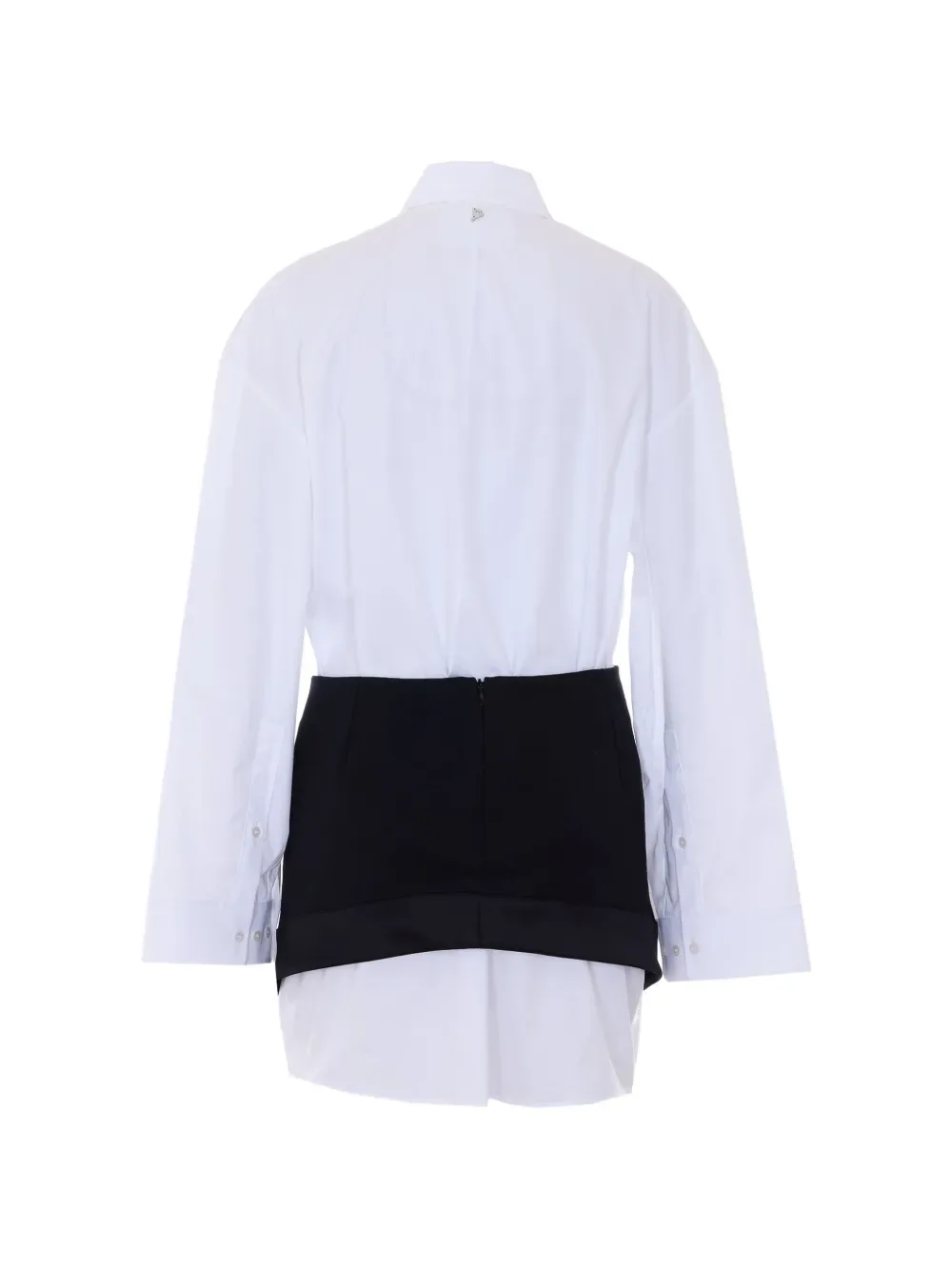 Белый классический воротник, длинные рукава, манжеты на пуговицах, многослойная отделка