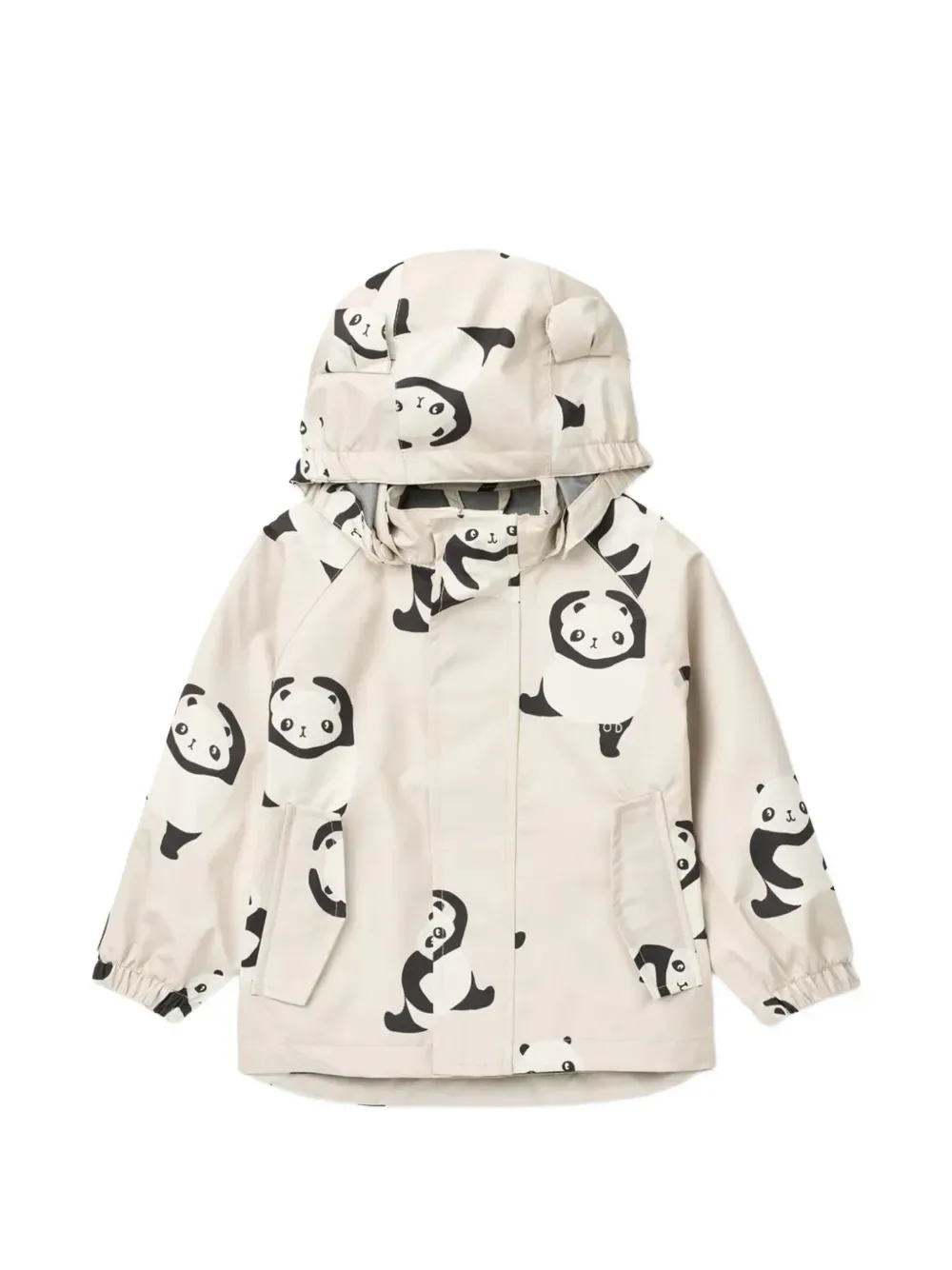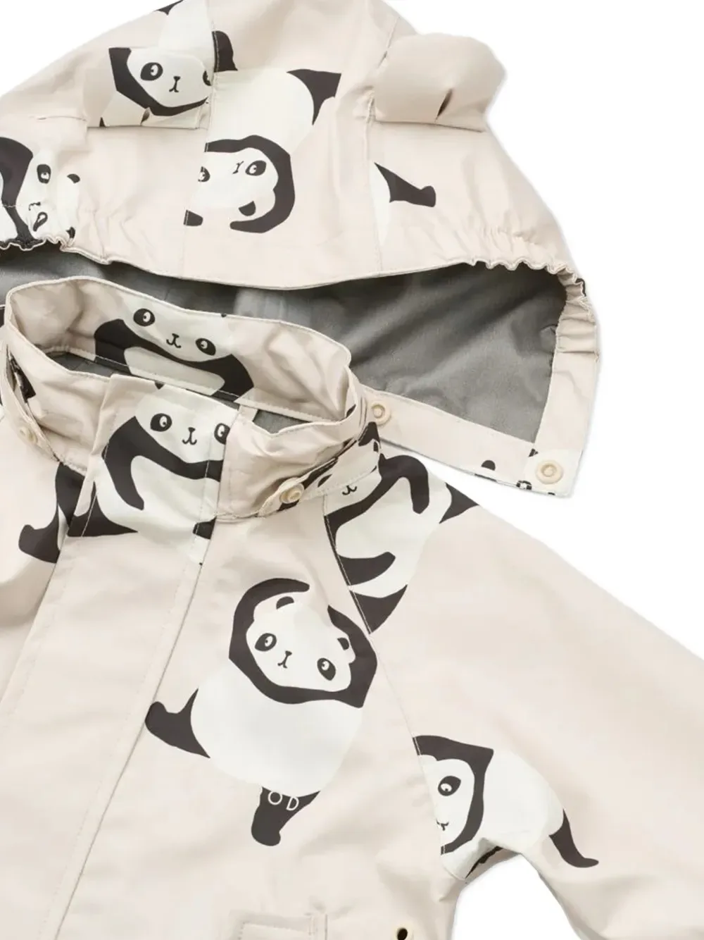 Экрю, принт с пандой, застежка на пуговицы, длинные рукава, эластичные манжеты, капюшон с ушками