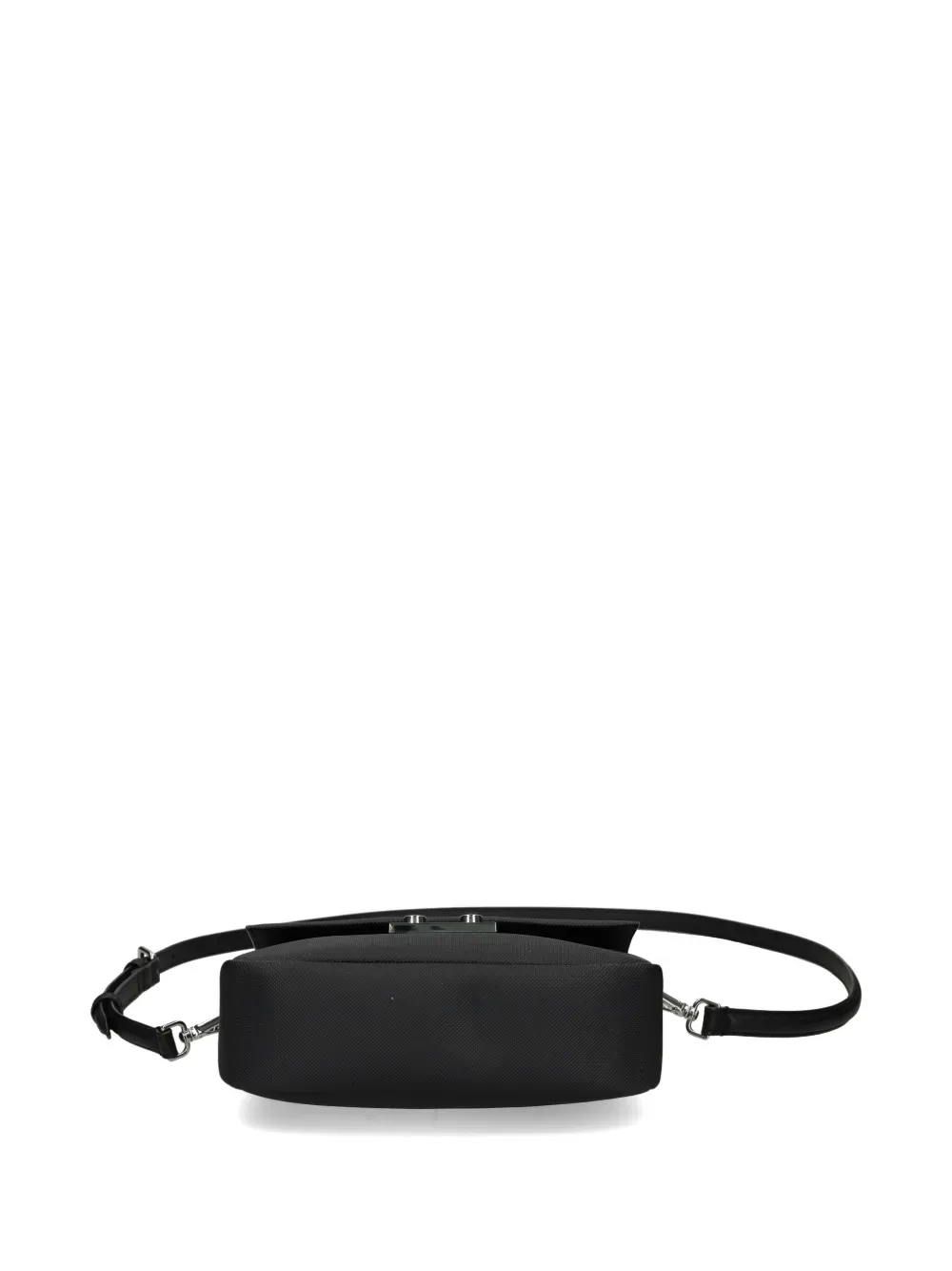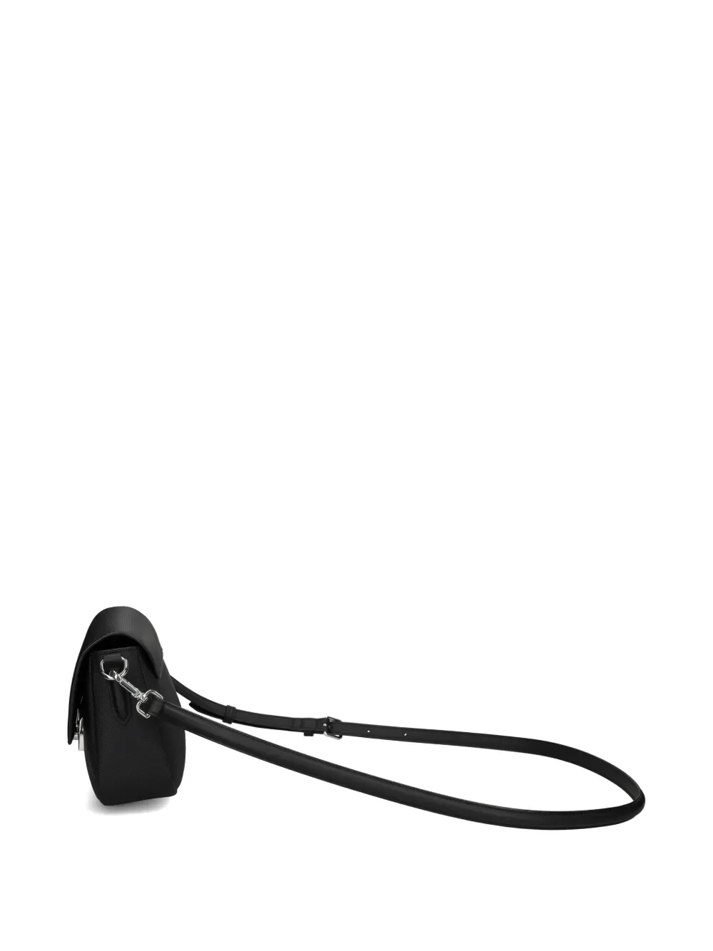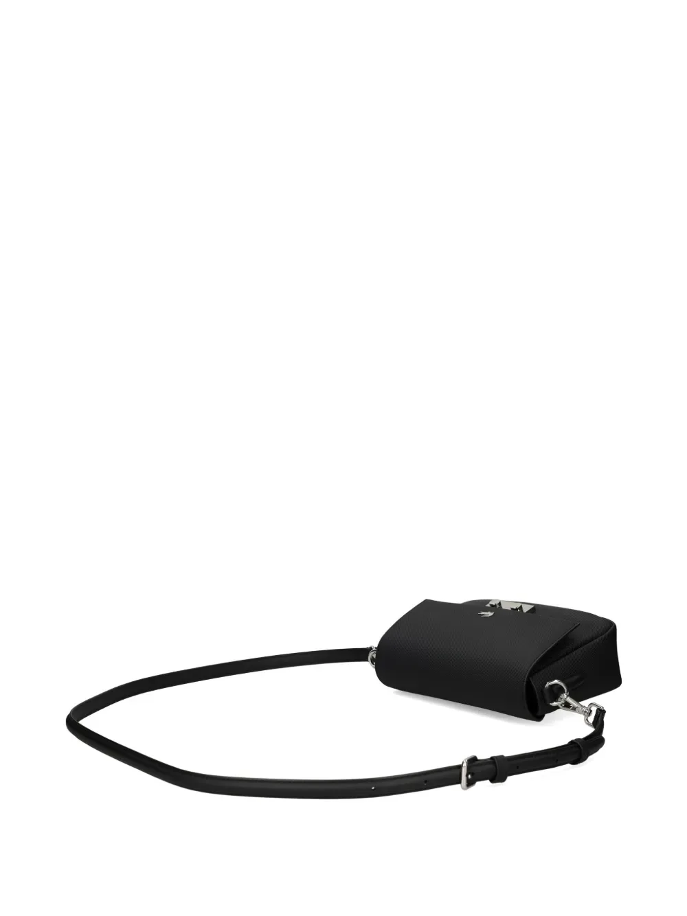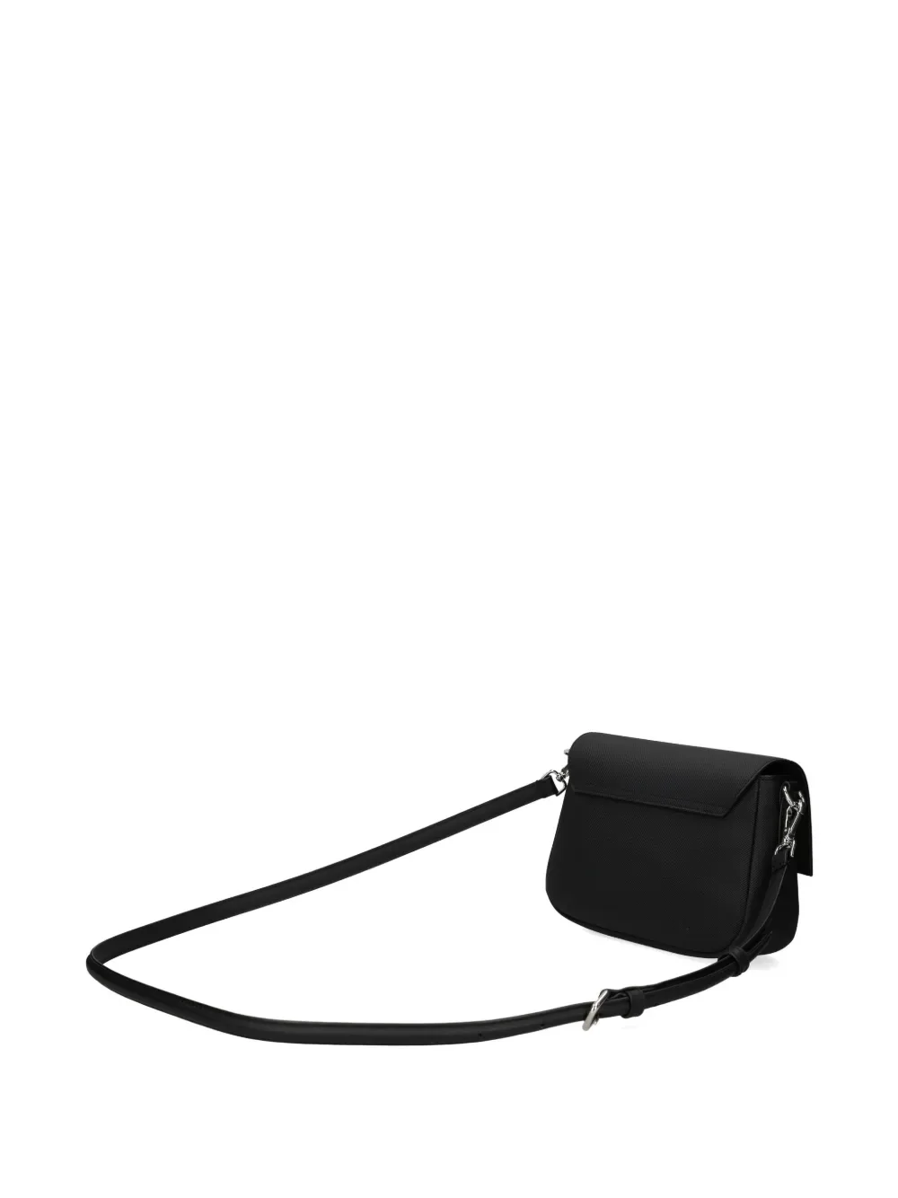 Черная тисненая отделка, регулируемый плечевой ремень, фурнитура серебристого цвета, откидной клапан, застежка-защелка