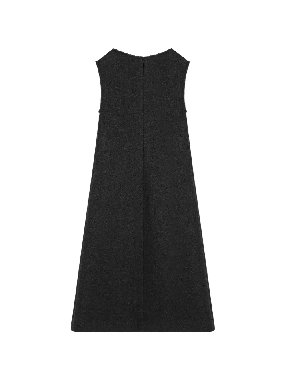 Темно-серое платье без рукавов А-силуэта с необработанными краями