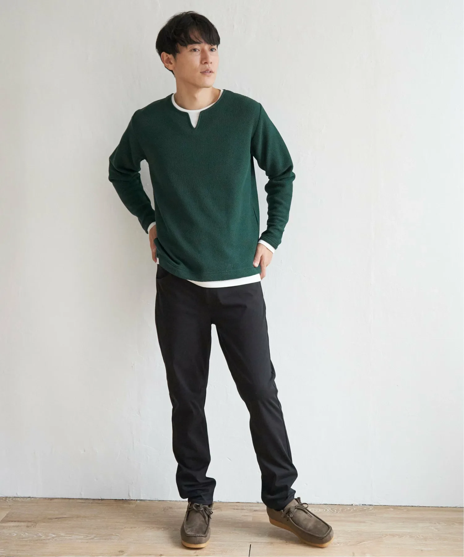 Вырез-«замочная скважина» на воротнике создает многослойный образ.
