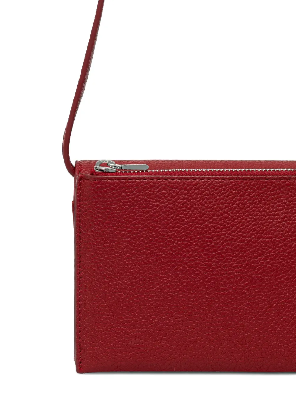 Красный цвет, серебристая табличка с логотипом, карман на молнии, магнитная застежка, регулируемый плечевой ремень