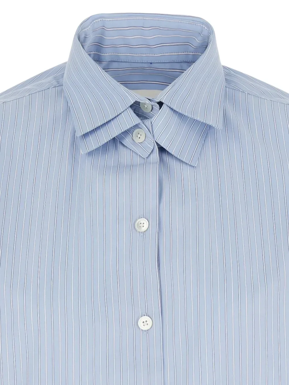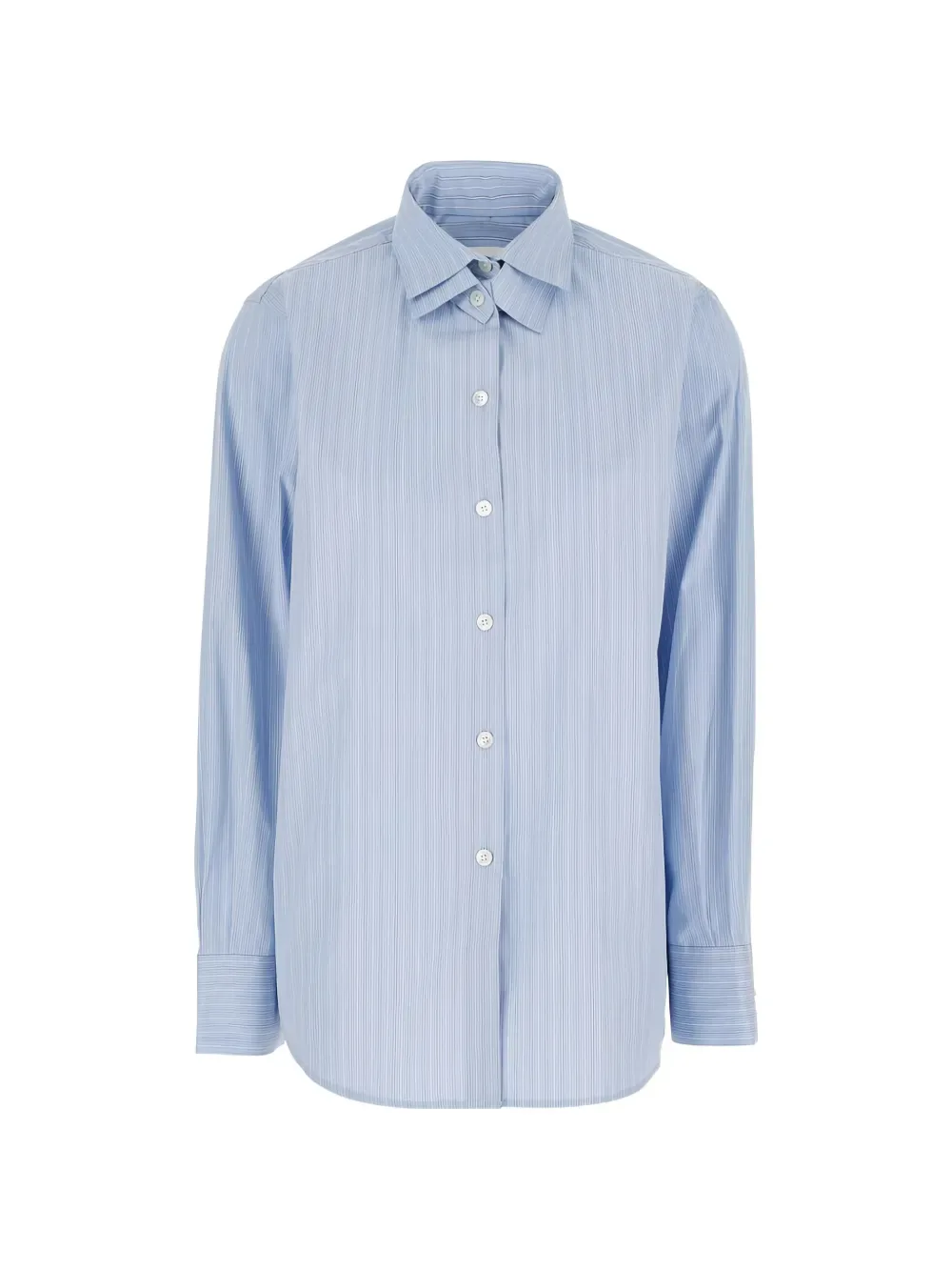 Синяя рубашка в полоску на пуговицах с длинными рукавами, манжетами на пуговицах и классическим воротником