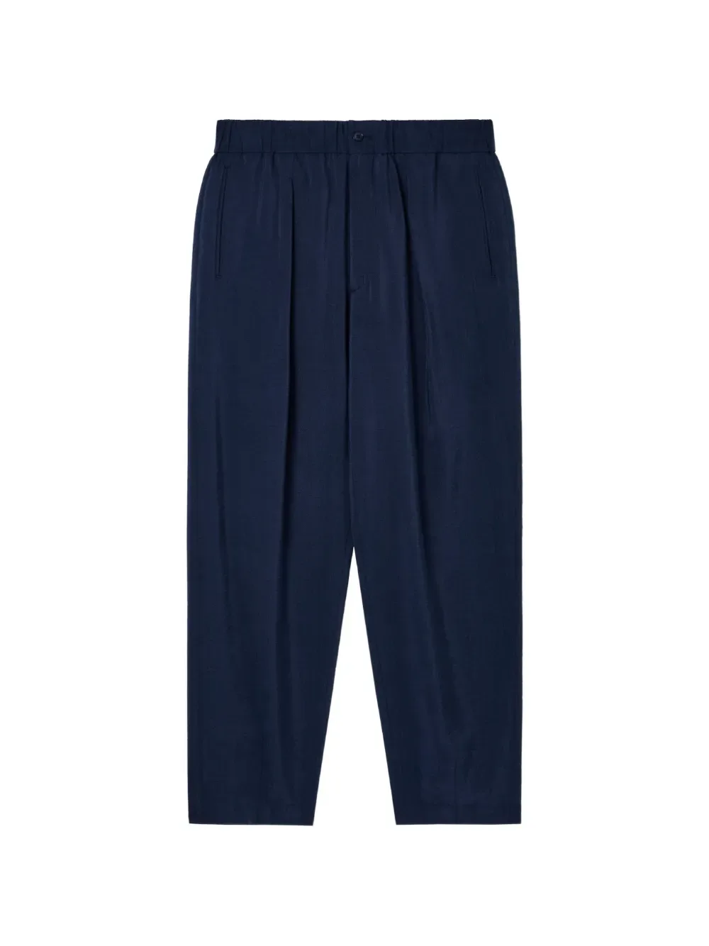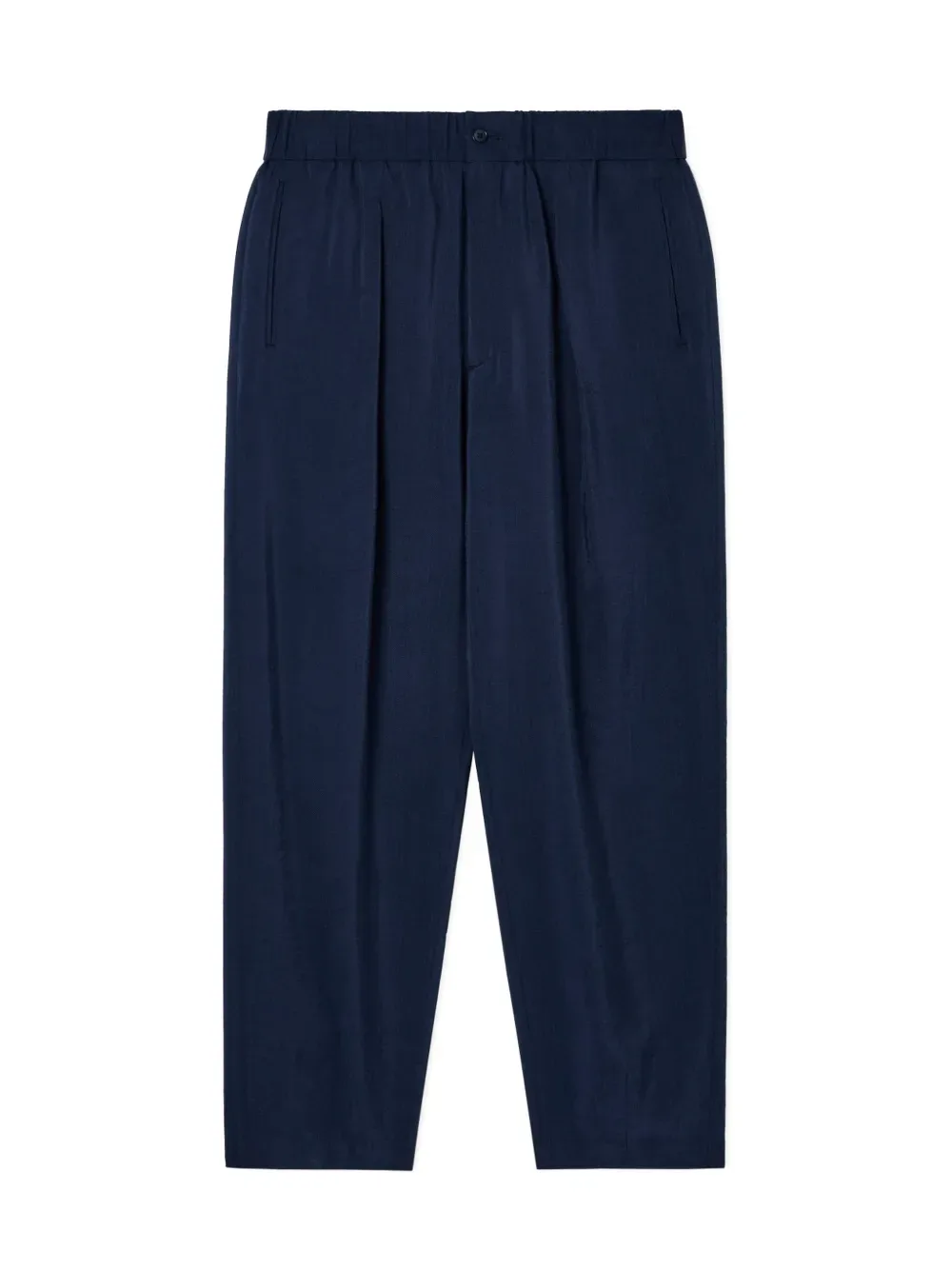 Темно-синие плиссированные брюки с эластичным поясом и боковыми карманами