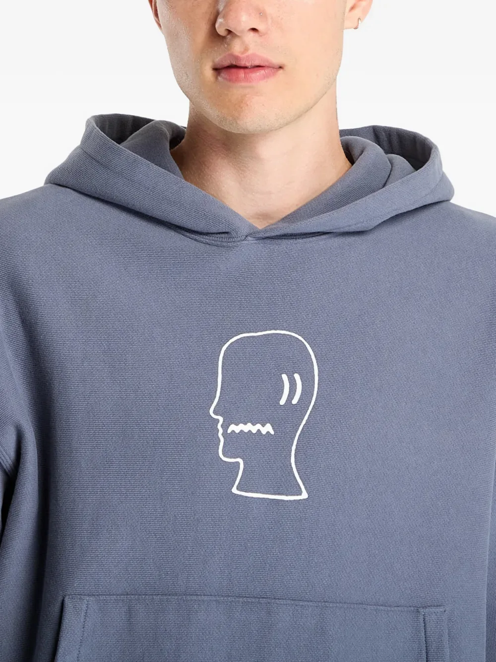 Синий худи с графическим принтом, передним карманом-кенгуру и длинными классическими рукавами
