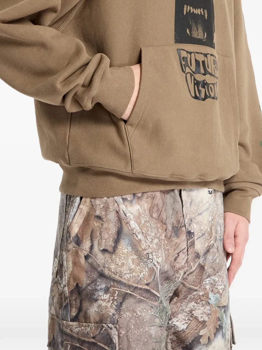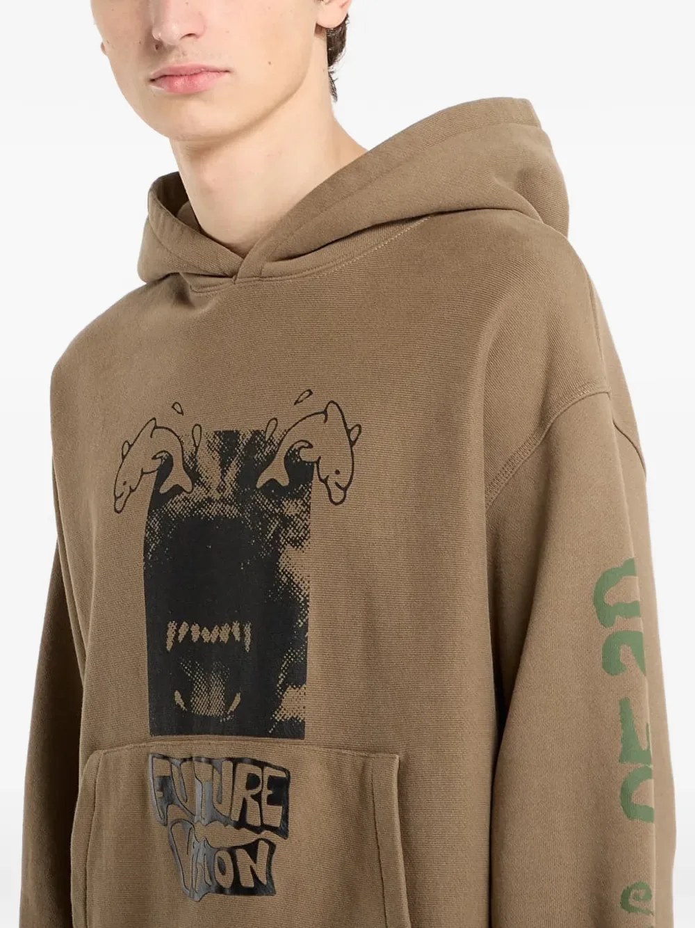 Коричневый худи с графическим принтом, длинными рукавами, кулиской на капюшоне, ребристым краем и карманом-кенгуру