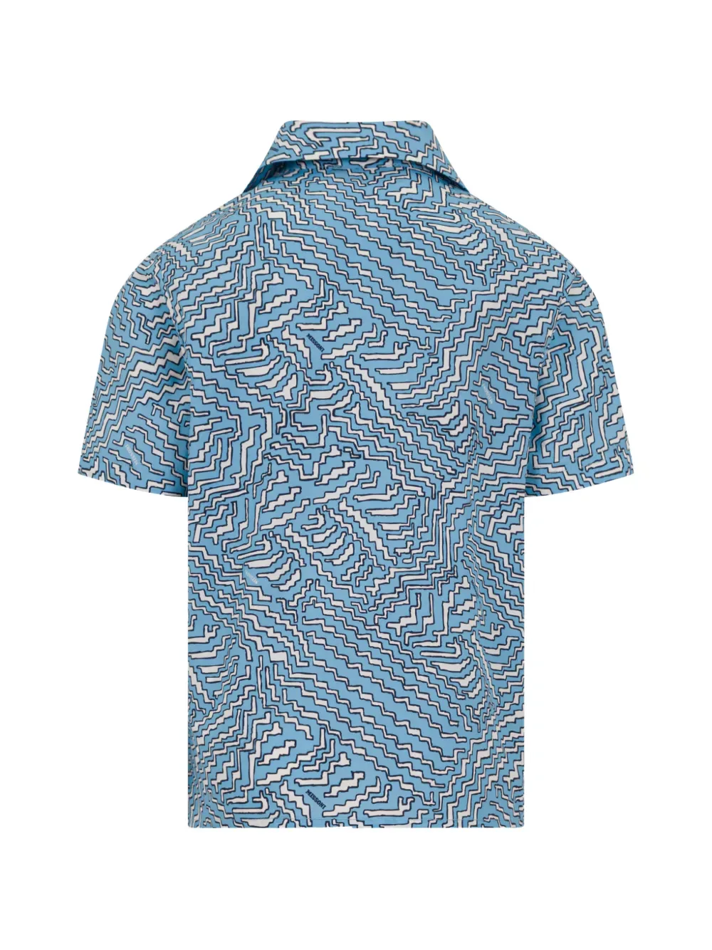 Светло-голубой узорчатый дизайн, застежка на пуговицы, короткие рукава, воротник