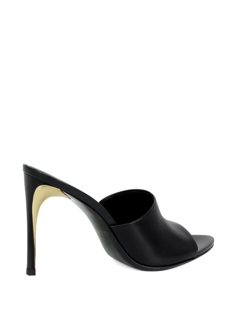 Черная кожа, каблук 9,5 см, каблук с золотистым оттенком, открытый носок, модель без застежки