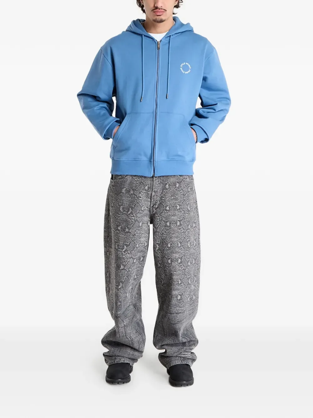 Синий худи на молнии с капюшоном на кулиске и двумя накладными карманами