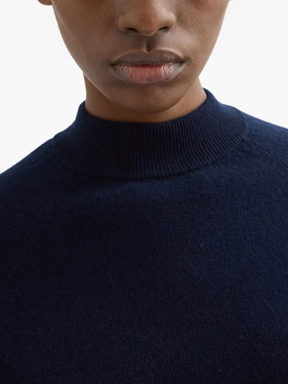 Синий укороченный топ с длинными рукавами и воротником-стойкой из смеси шерсти