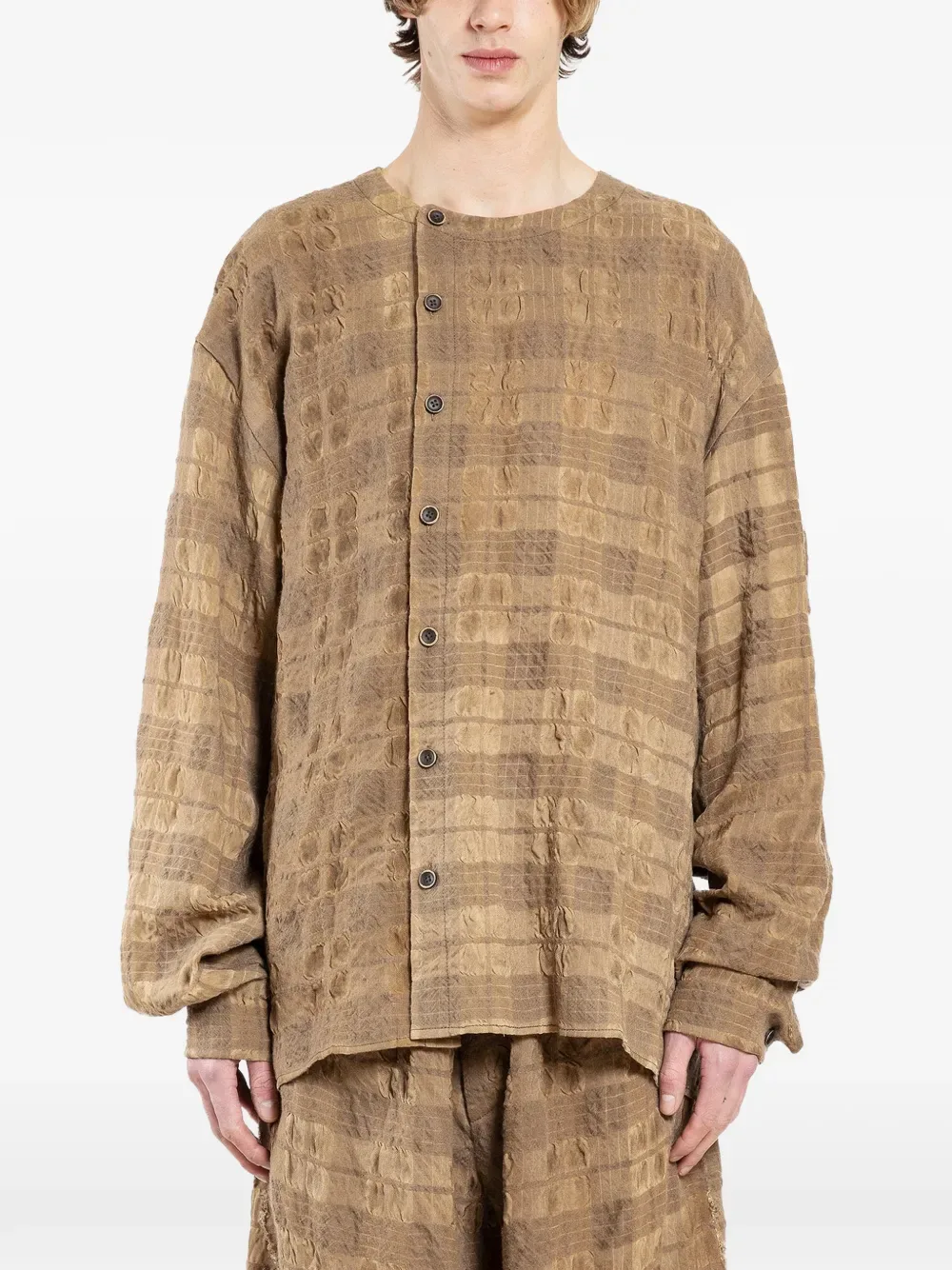 Желтый и бежевый, застежка на пуговицы, длинные рукава, узор по всей поверхности