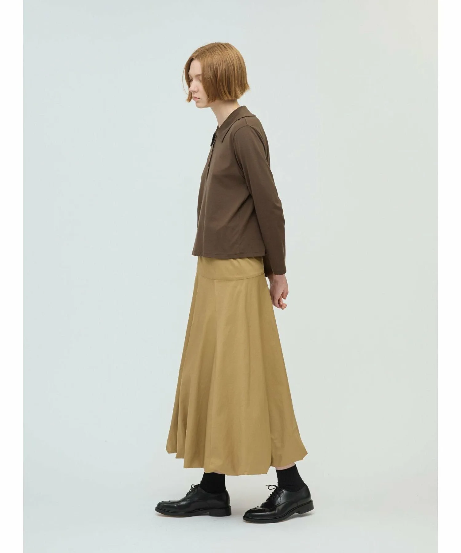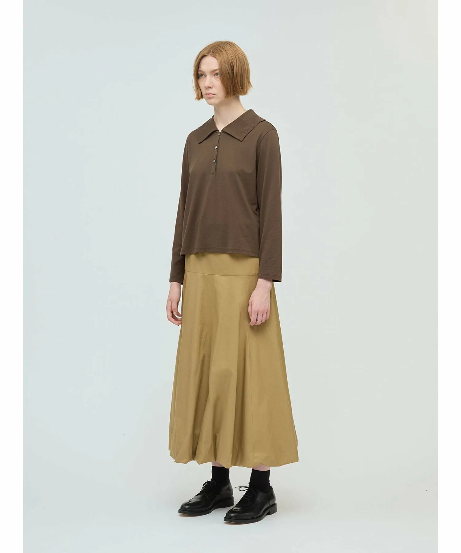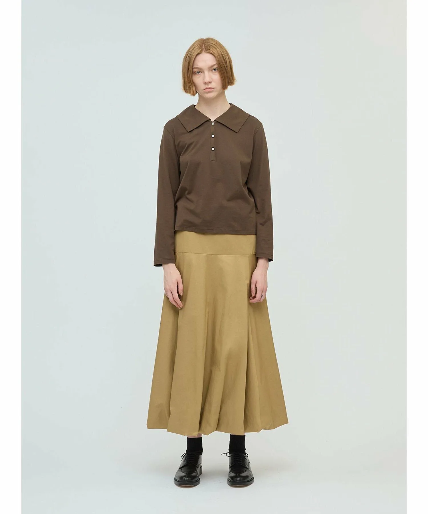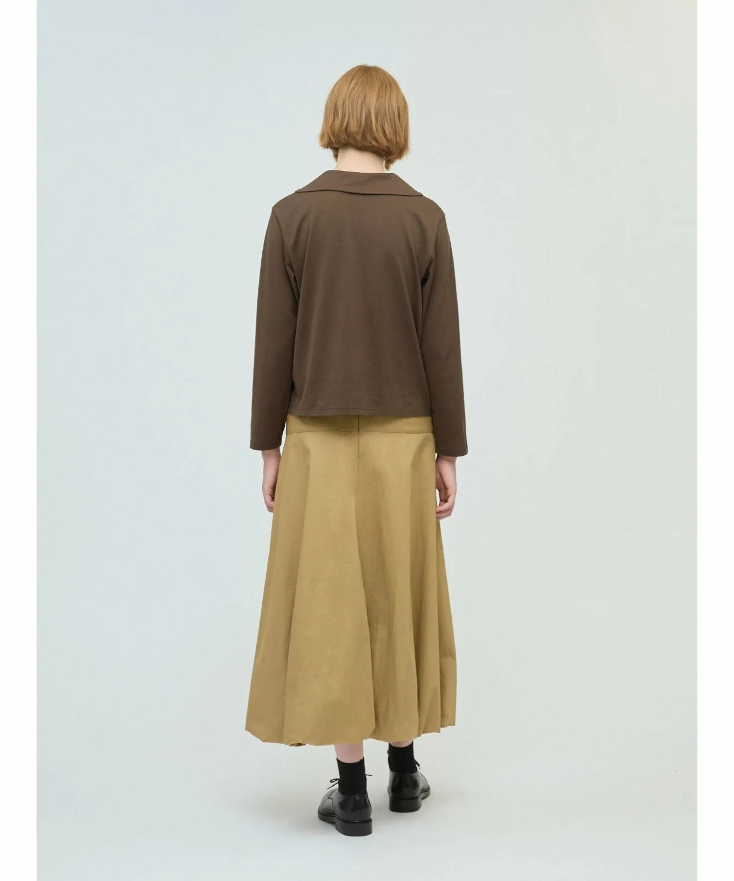 Эта длинная расклешенная юбка-баллон — свежий тренд этого сезона. Стильная модель с силуэтом «приталенное и расклешенное». Юбка скроена на бедрах, что придает ей аккуратный, элегантный вид, не создавая при этом излишней пышности, а расклешенный силуэт создает впечатляющий эффект. В зависимости от верха, эту юбку можно носить как с деловым, так и с повседневным образом. Мы также рекомендуем заправлять в нее рубашку. Эластичный пояс сзади на талии обеспечивает плотную посадку, а застежка-молния сзади на талии облегчает надевание и снимание. Подготовьтесь к осеннему сезону с этой свежей юбкой от mizuiro ind.