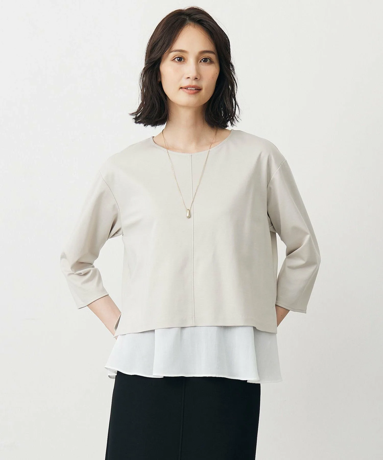Дизайн: Этот цельный крой и пошив выполнены из свободного трикотажа с расклешенным низом. Он достаточно хорошо сидит, чтобы носить его отдельно, а легкий подол красиво колышется и естественно прикрывает бедра. Край полностью белый, что создает свежий, расслабленный образ, не создавая ощущения тяжести. Доступен в четырех цветах: приглушенный серый (#004), мягкий, женственный розовый (#112), приятный для кожи бежевый (#033) и изысканный тускло-голубой (#074).