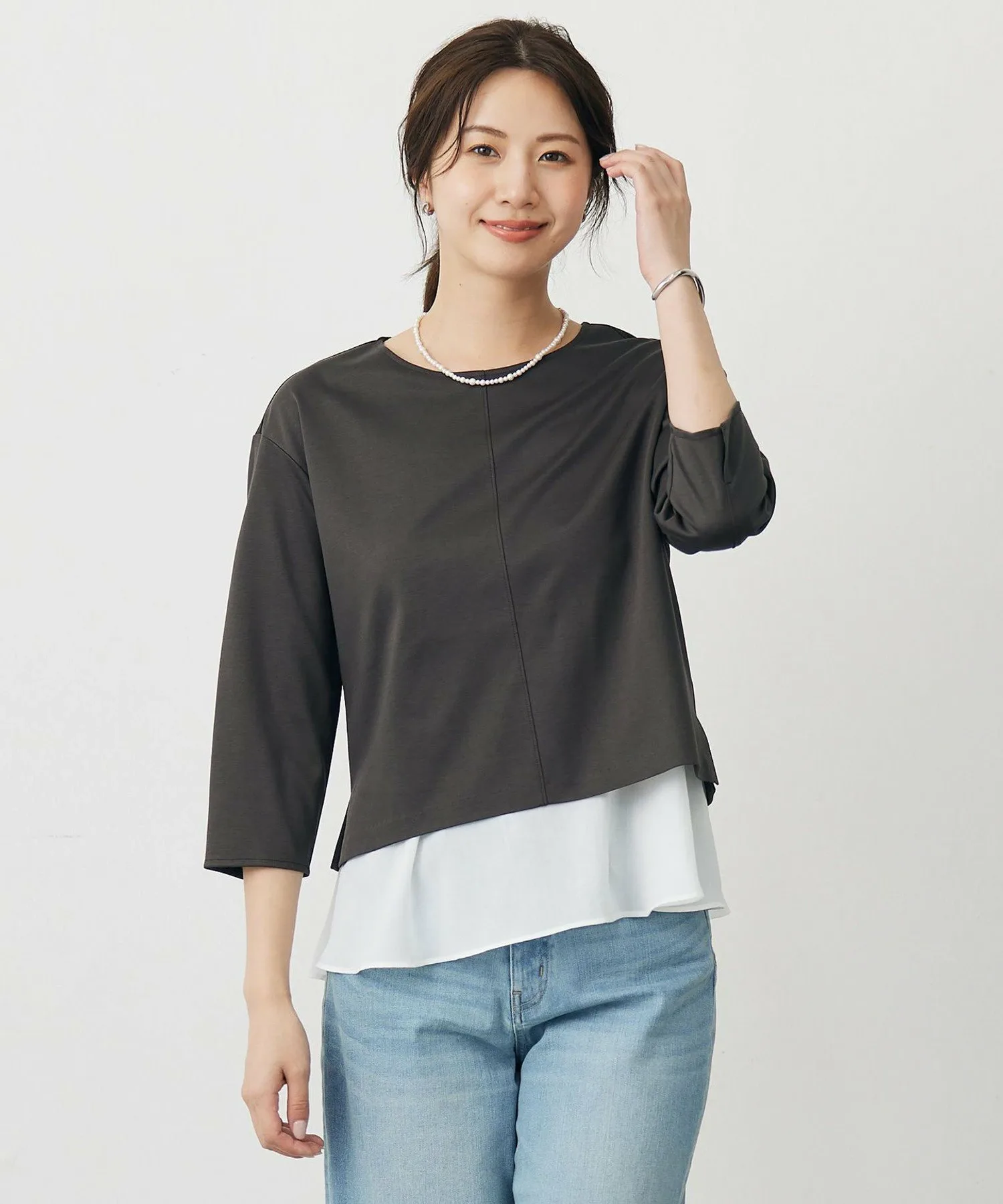 Дизайн: Этот цельный крой и пошив выполнены из свободного трикотажа с расклешенным низом. Он достаточно хорошо сидит, чтобы носить его отдельно, а легкий подол красиво колышется и естественно прикрывает бедра. Край полностью белый, что создает свежий, расслабленный образ, не создавая ощущения тяжести. Доступен в четырех цветах: приглушенный серый (#004), мягкий, женственный розовый (#112), приятный для кожи бежевый (#033) и изысканный тускло-голубой (#074).