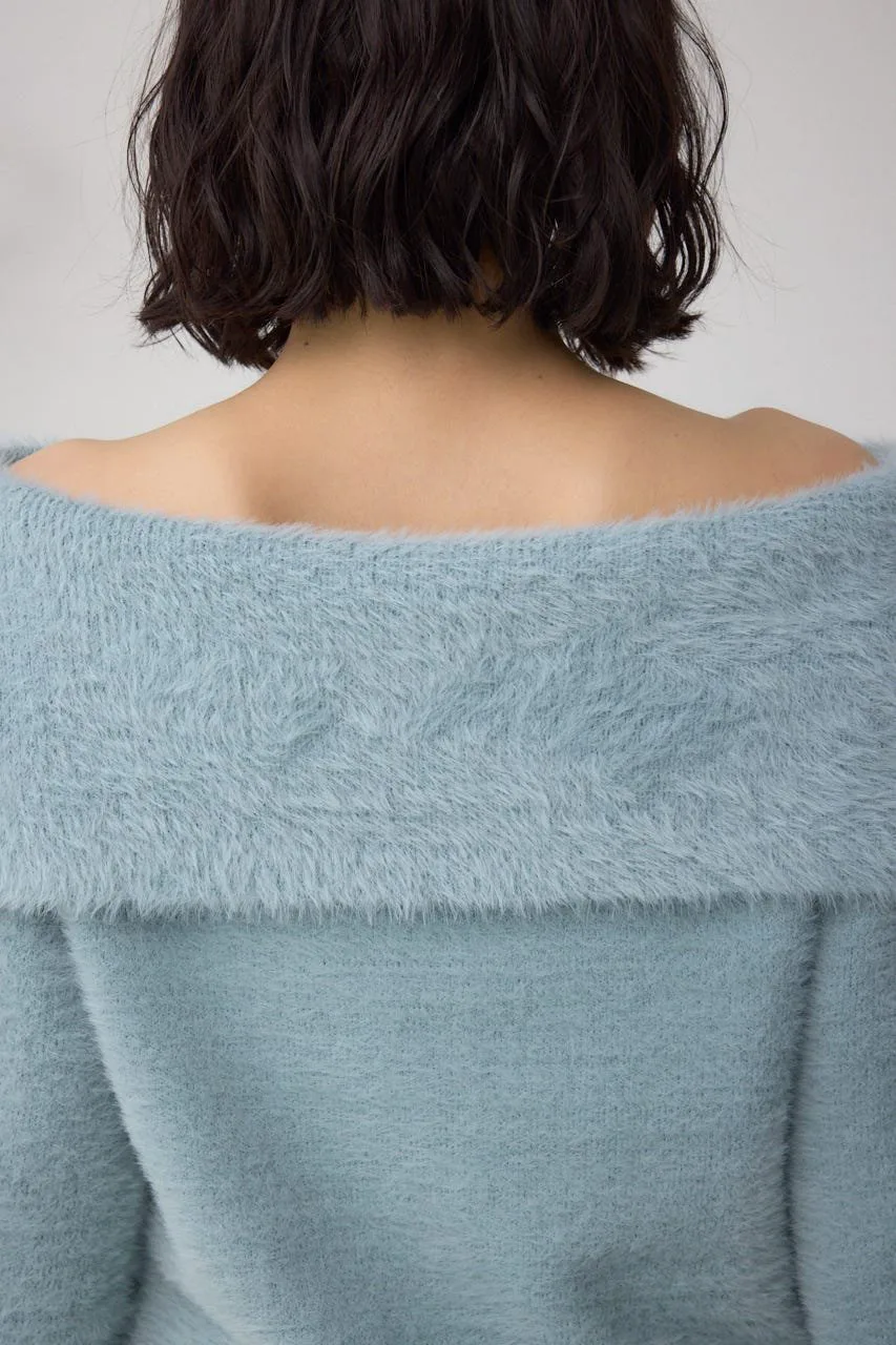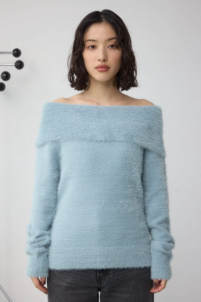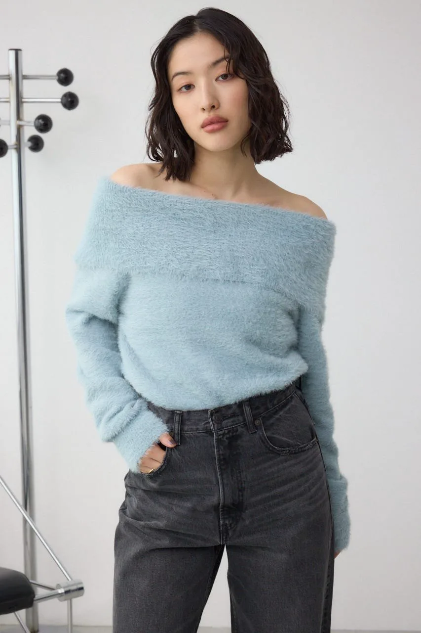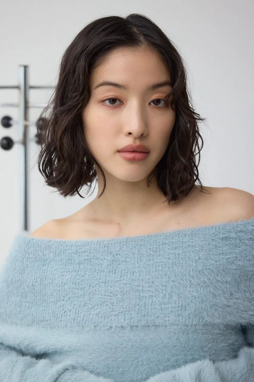 Трикотаж с открытыми плечами из мохеровой пряжи