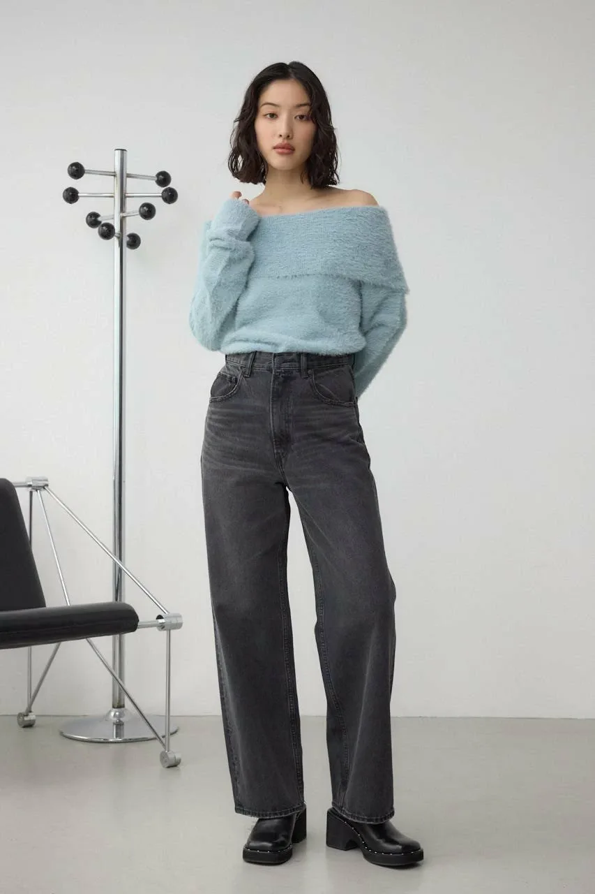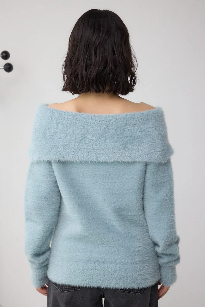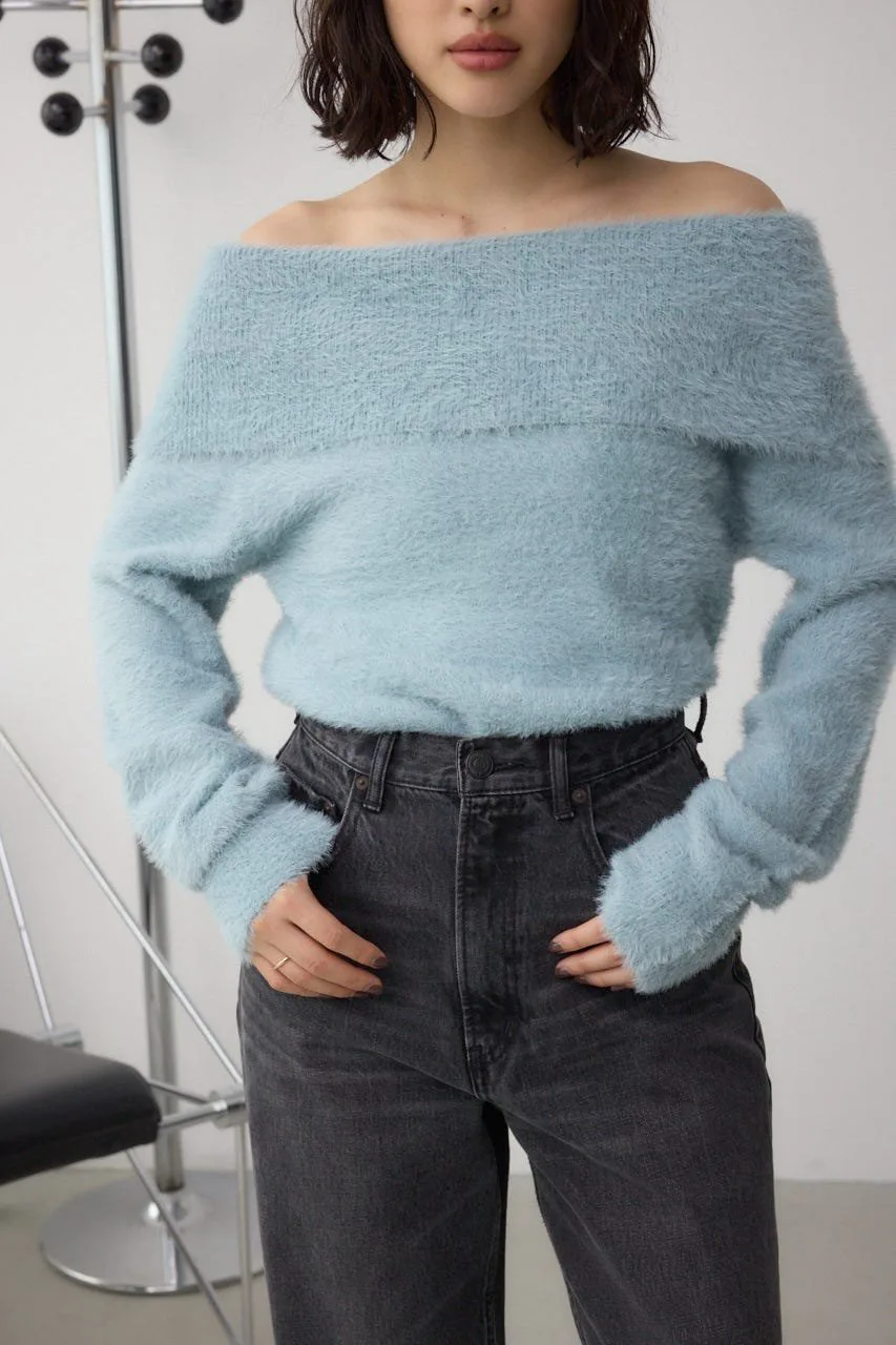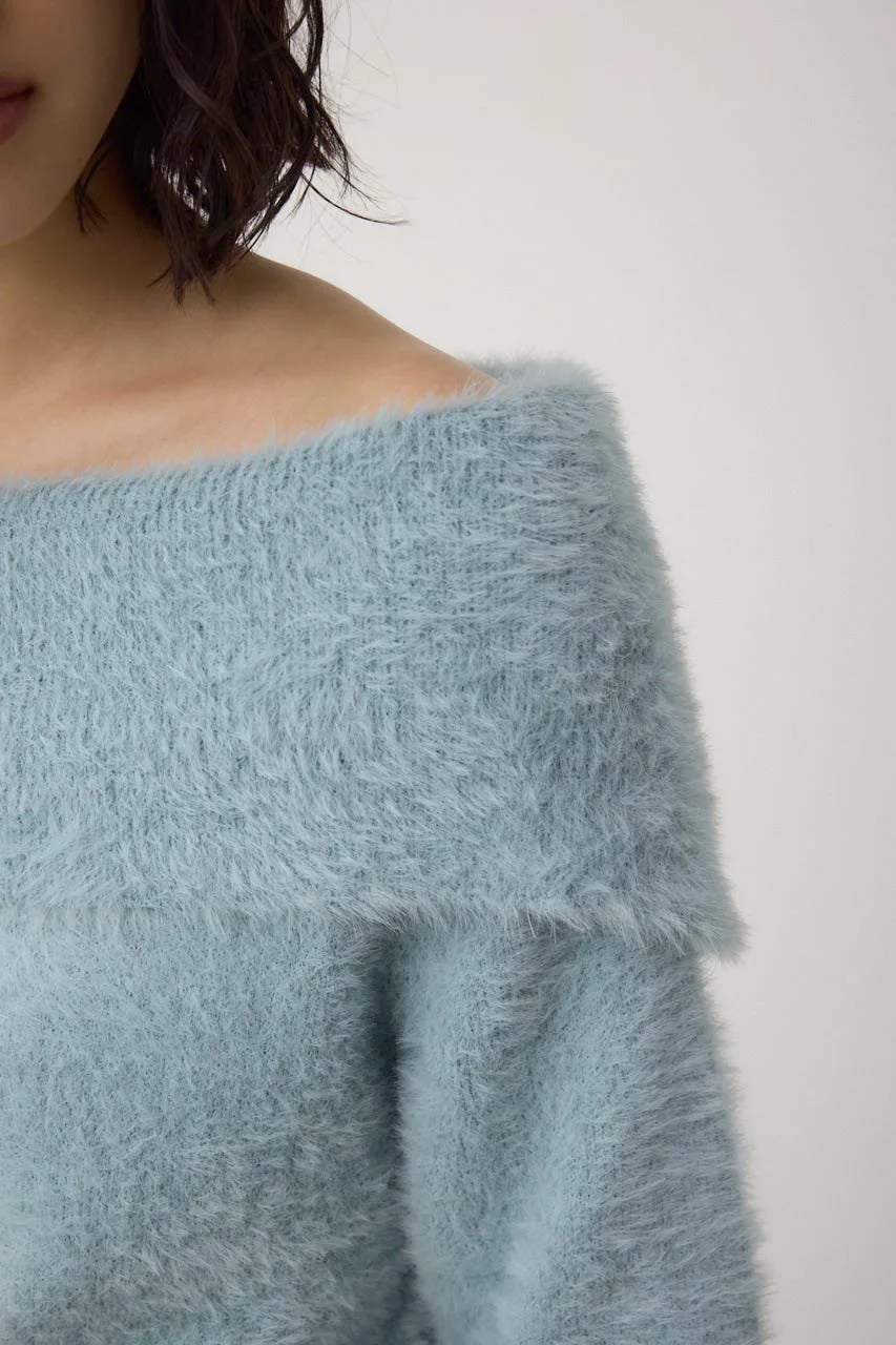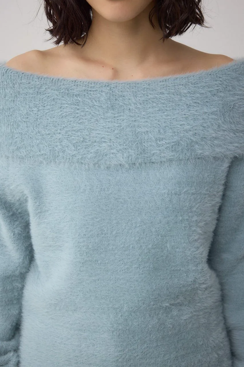 Трикотаж с открытыми плечами из мохеровой пряжи
