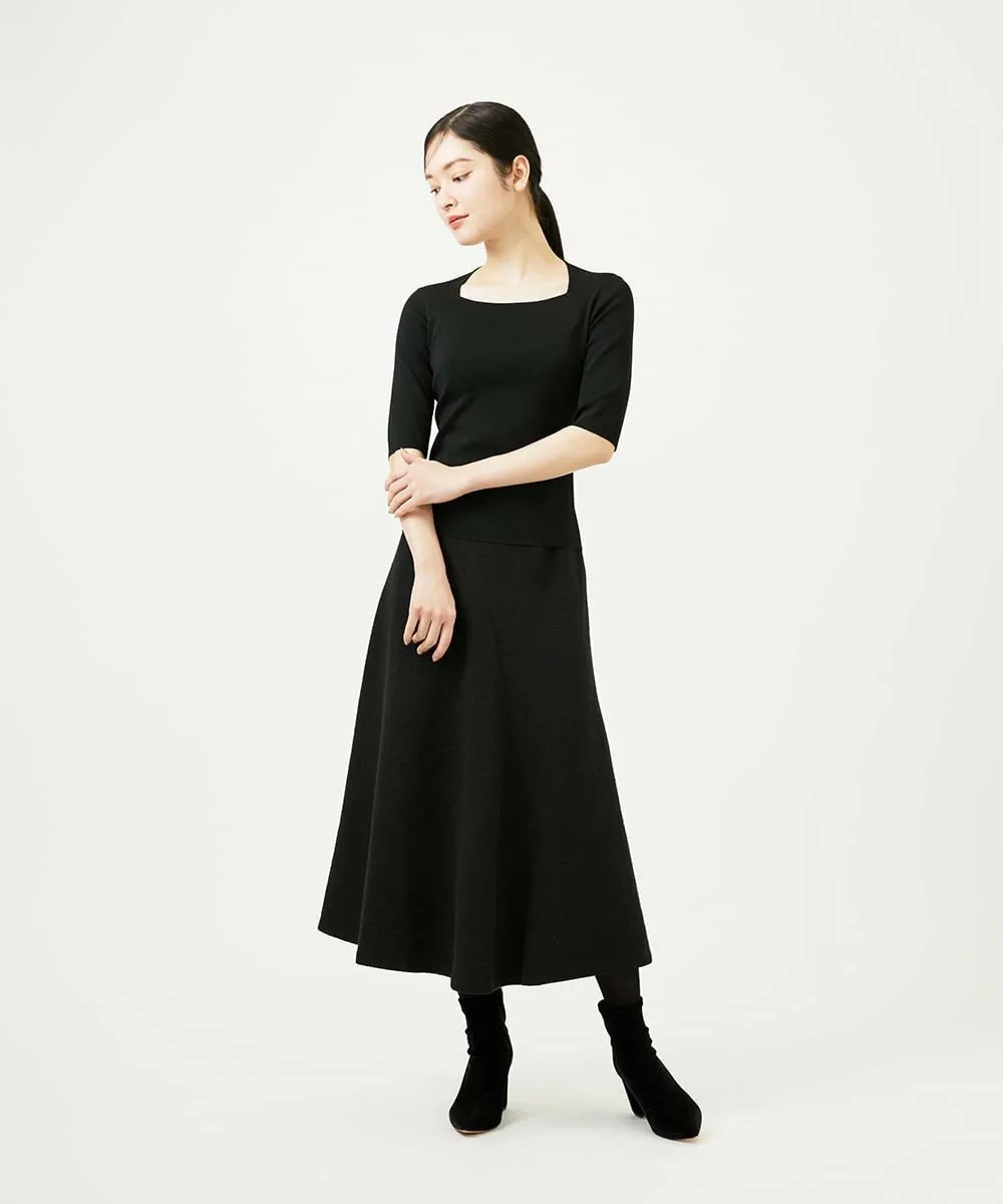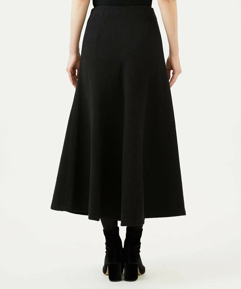 Юбка, максимально использующая мягкость материала, имеет аккуратную линию талии и слегка расширяется к низу, создавая женственный силуэт.
