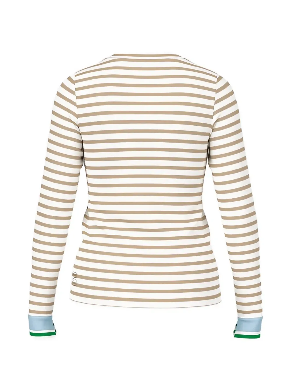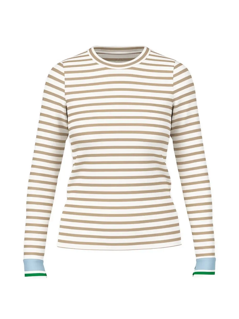 Нейтральные оттенки, полосатый принт, круглый вырез, длинные рукава, контрастные манжеты