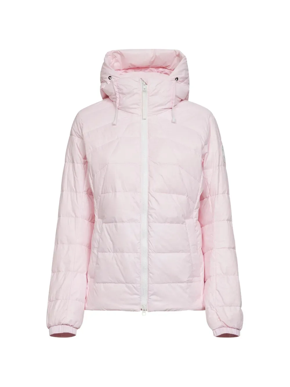 Розовая стеганая куртка с капюшоном, нашивкой с логотипом, боковыми карманами, эластичными манжетами и регулируемым шнурком
