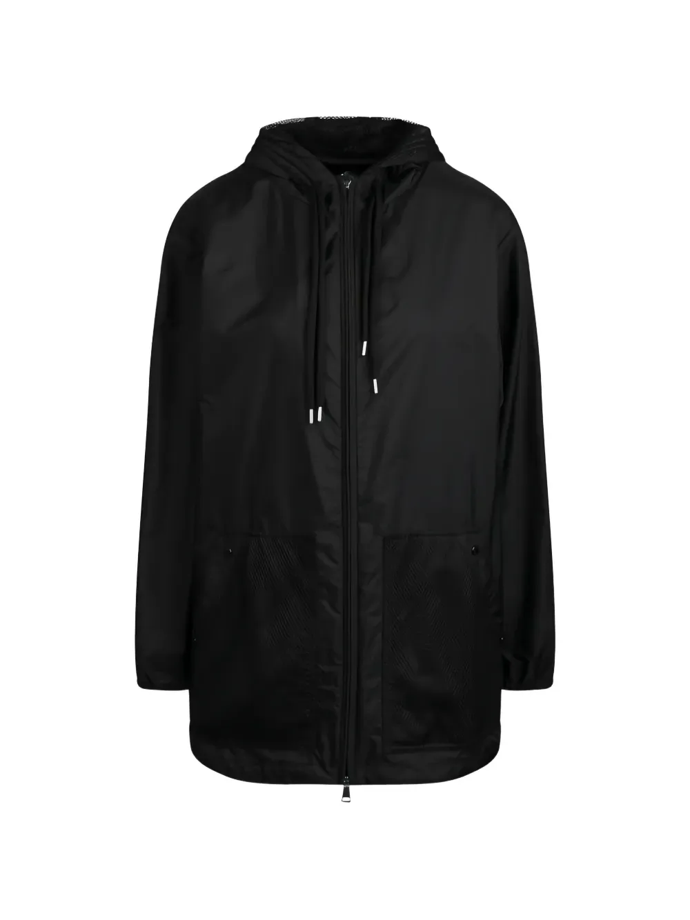Черная толстовка с сетчатыми вставками, капюшоном на кулиске, застежкой-молнией спереди, длинными рукавами и прямым подолом