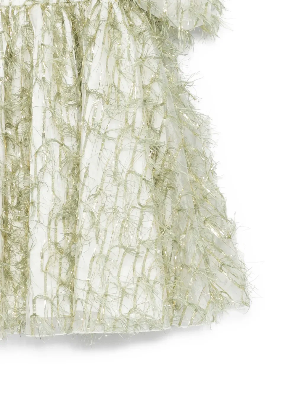 Оливково-зеленое платье с короткими рукавами, круглым вырезом, текстурированной отделкой и юбкой силуэта "А-силуэт"