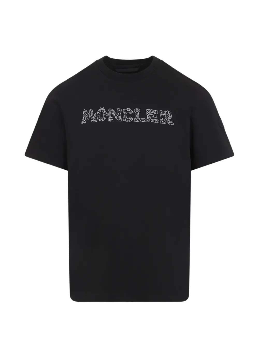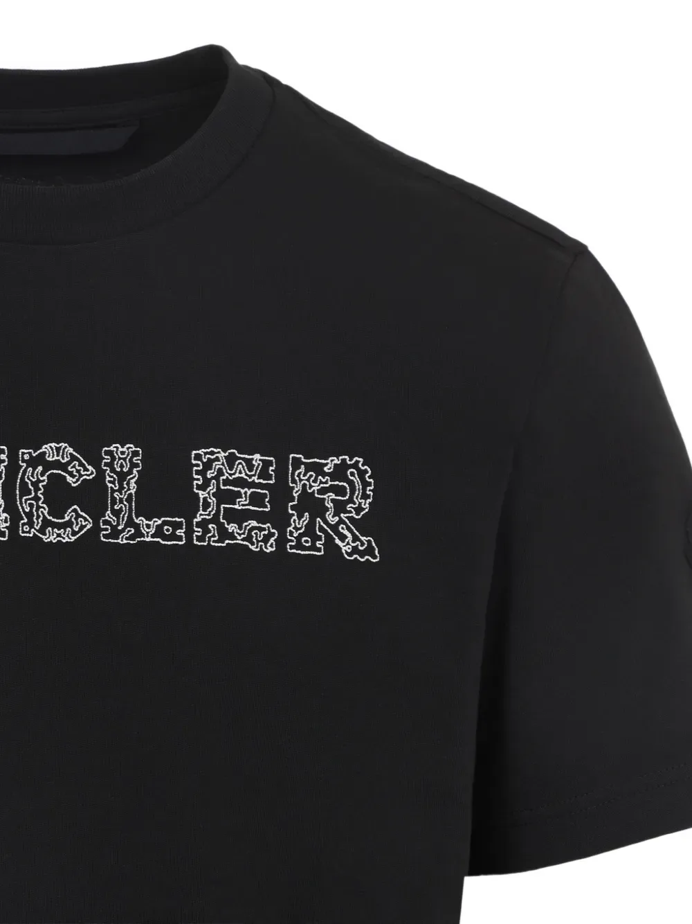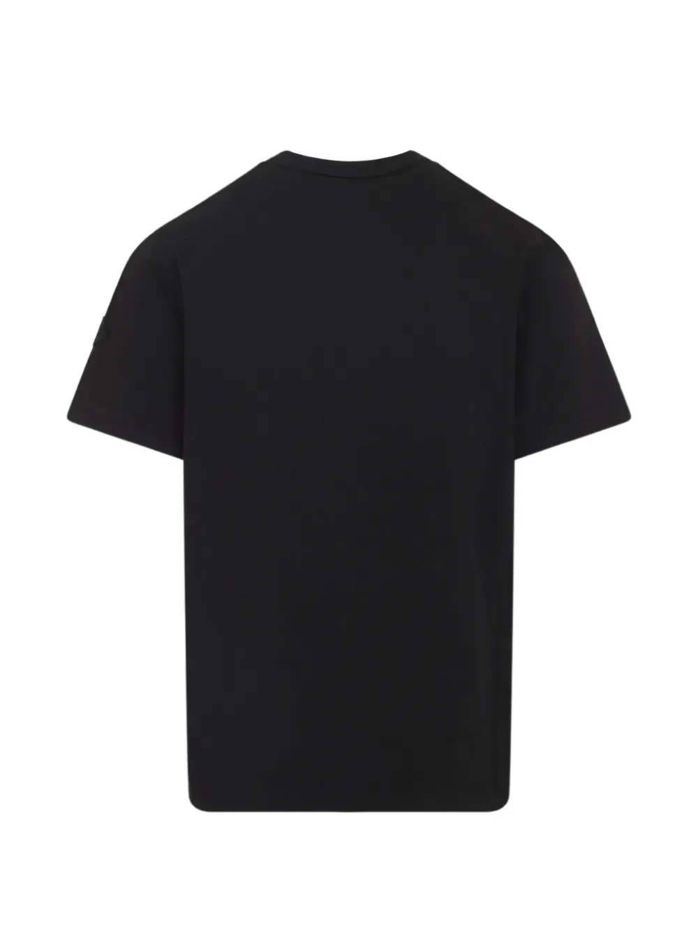 Черная футболка с логотипом, круглым вырезом и короткими рукавами