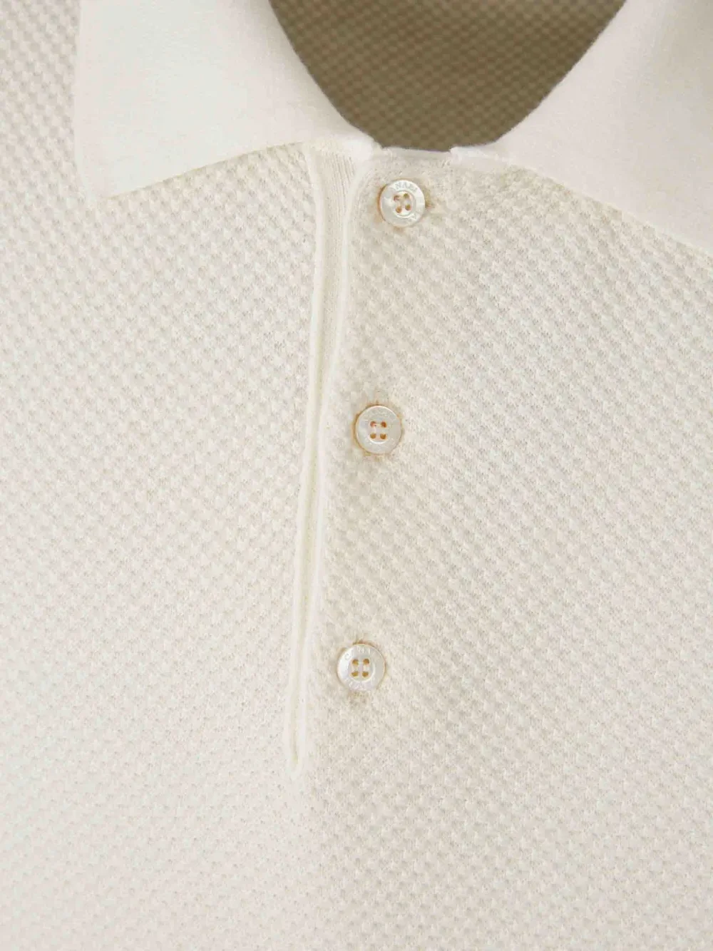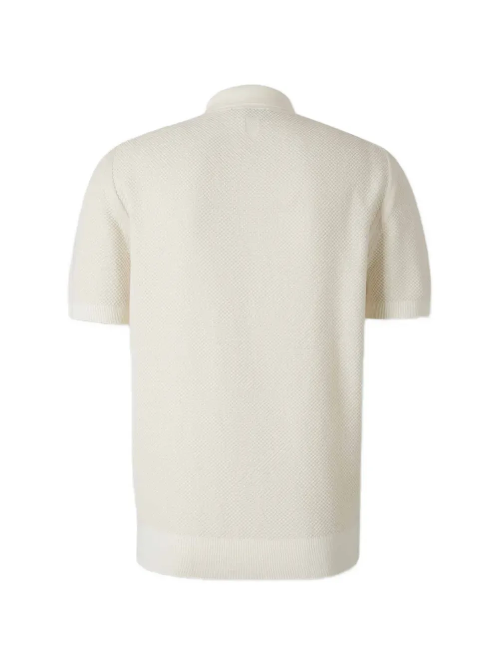 Фактурный трикотаж от Off-White, застежка на пуговицы, воротник-поло, короткие рукава, ребристый низ