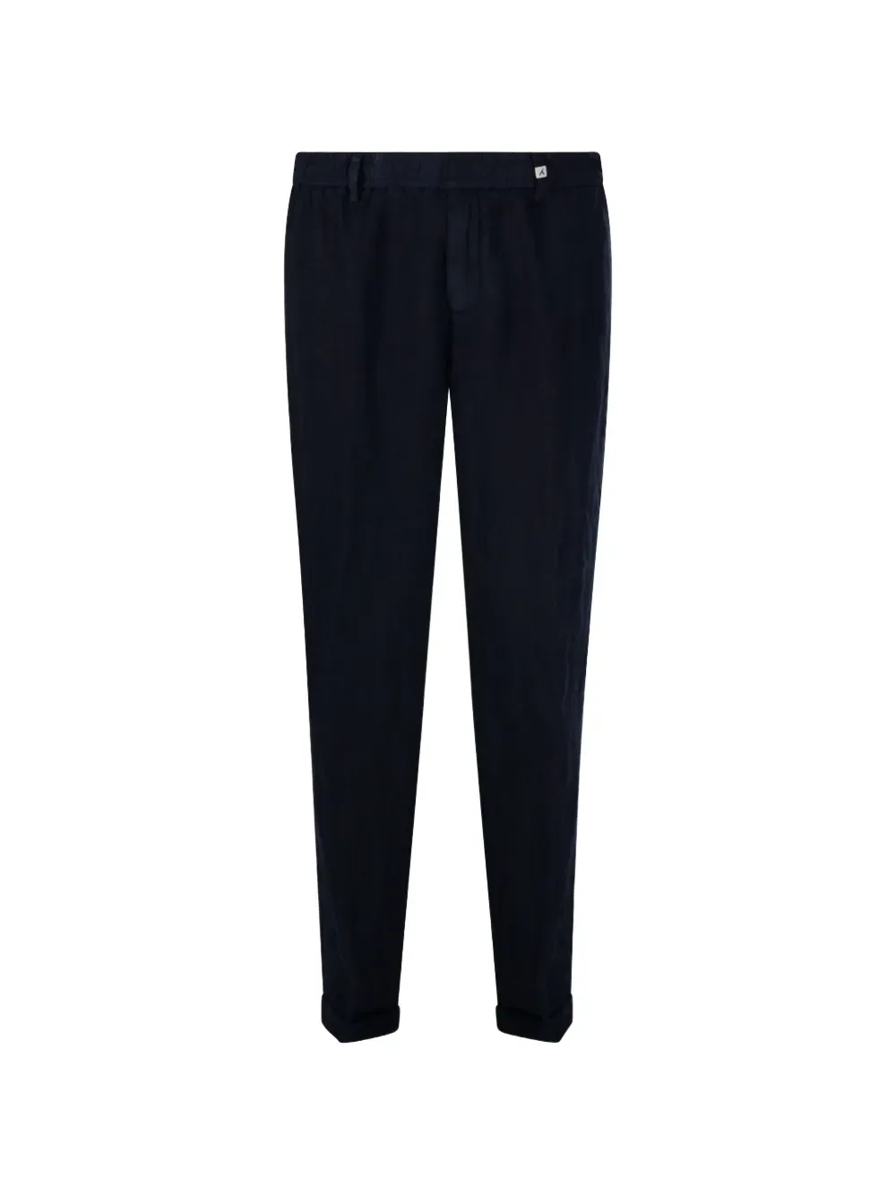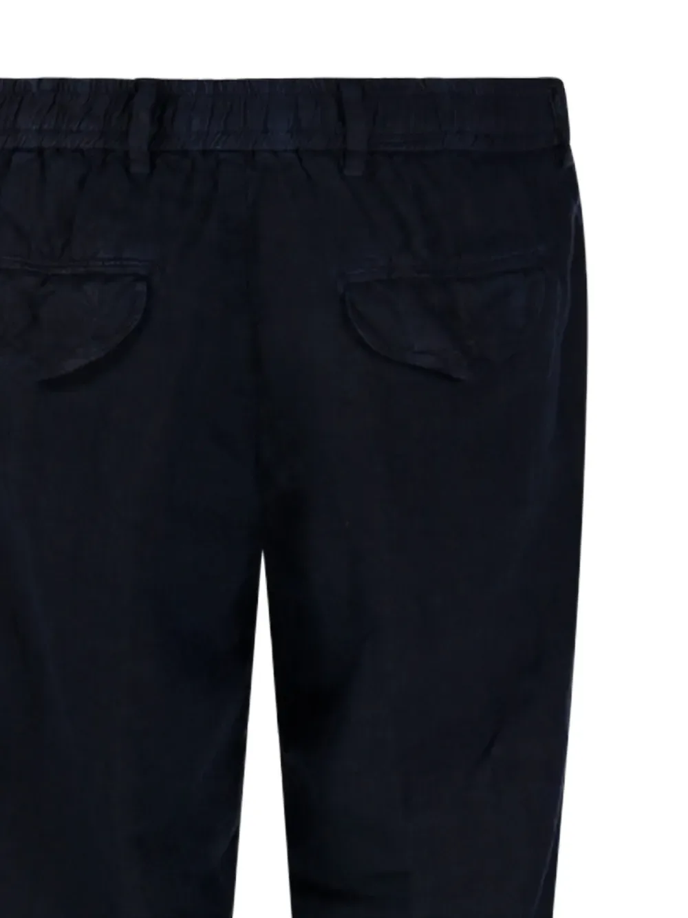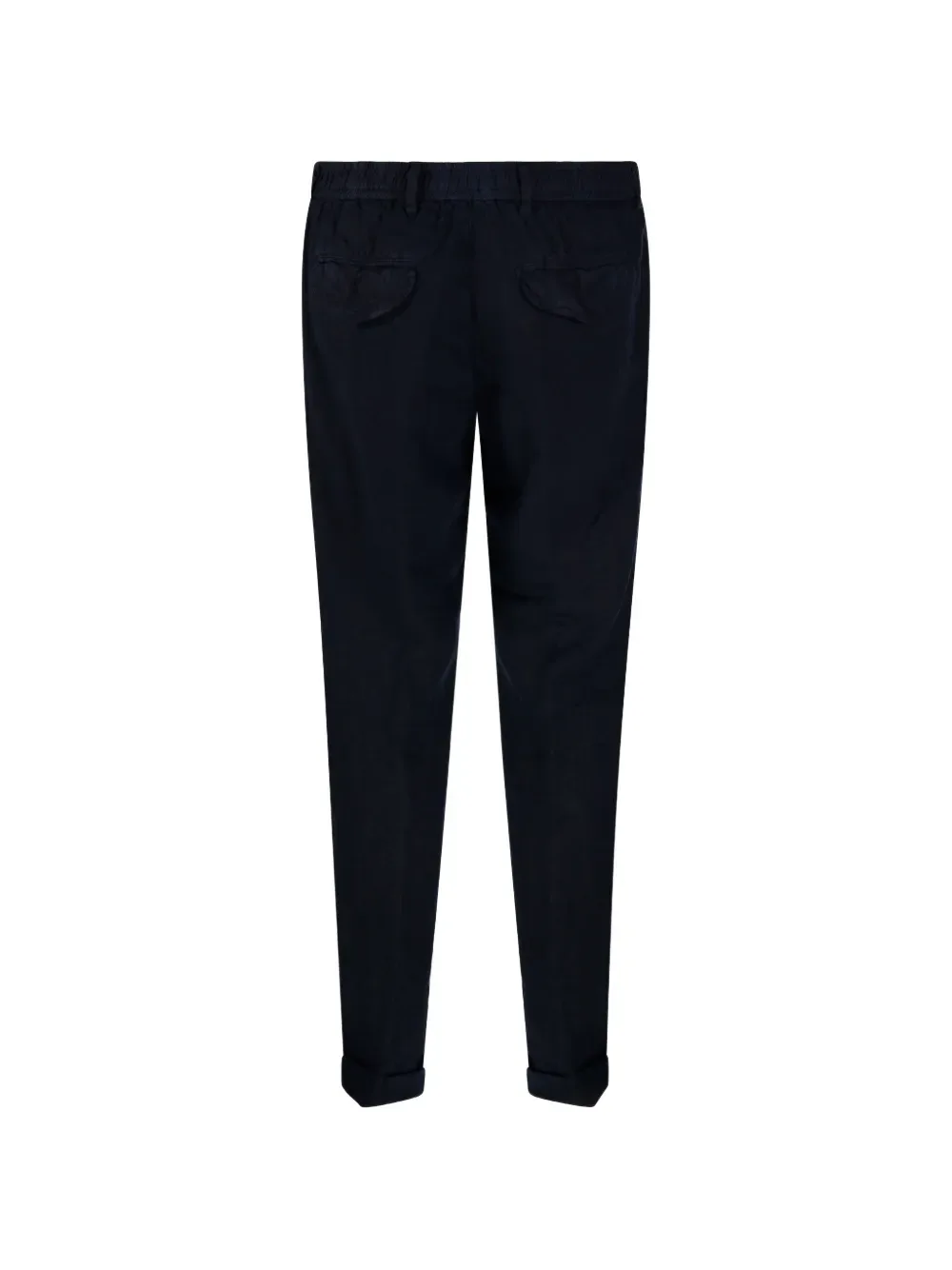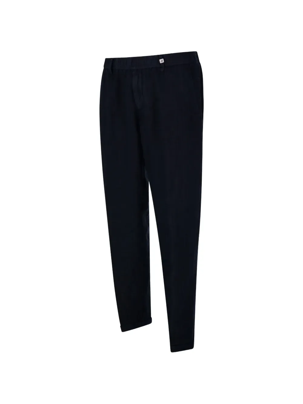 Темно-синий цвет, эластичный пояс, манжеты на брючинах, прорезной карман сзади, передние косые карманы