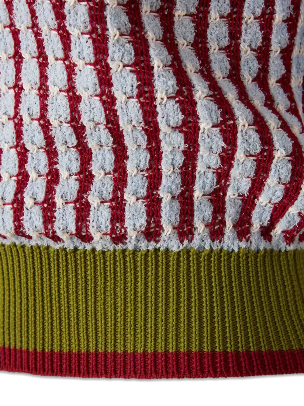 Красный/голубой/зеленый в полоску, застежка на пуговицы, воротник-поло, рукава три четверти, текстурированная отделка