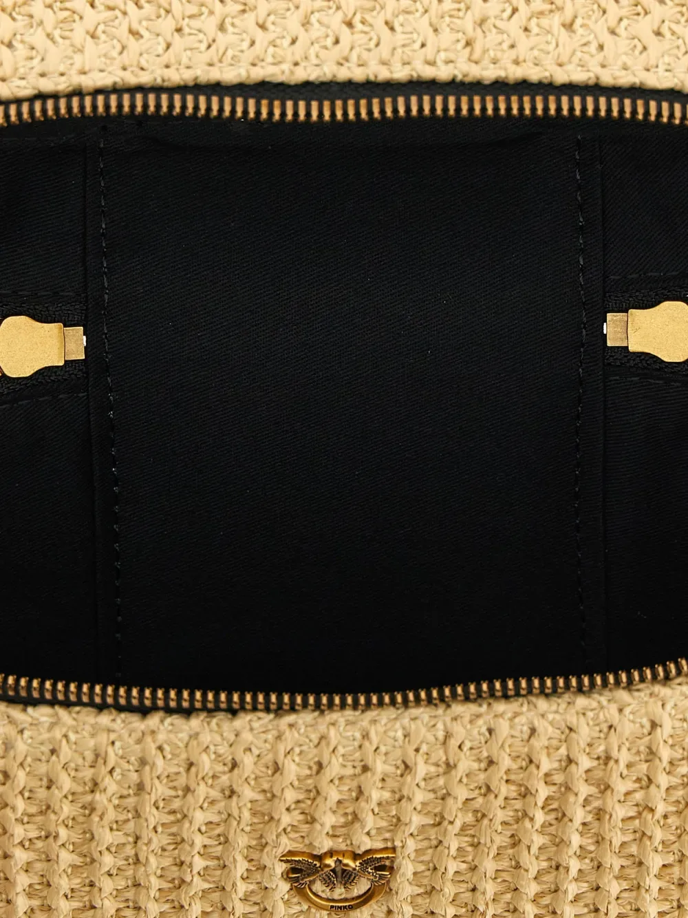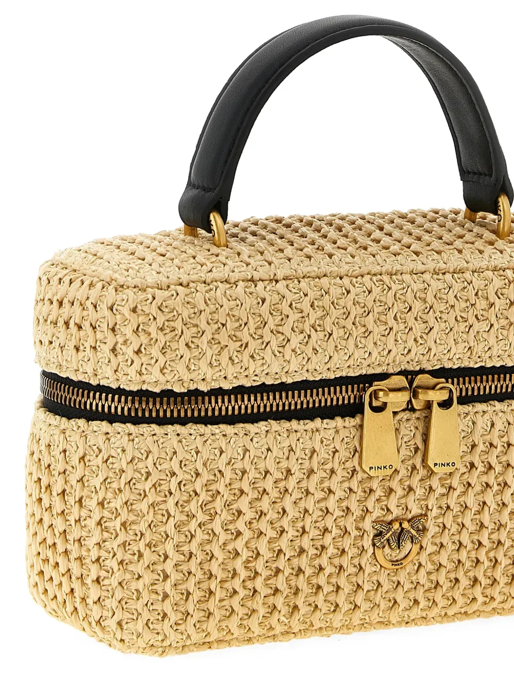 Бежевый топ из рафии, застежка на молнию сверху, одна верхняя ручка