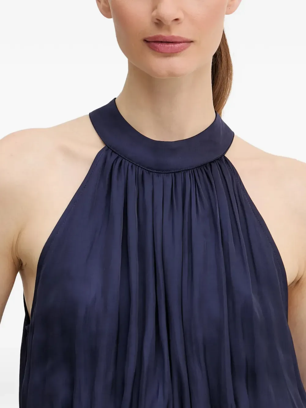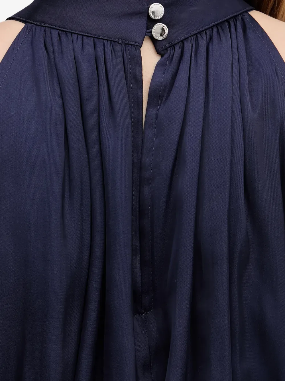 Темно-синий, плиссированный дизайн, эластичная талия, застежка на пуговицы сзади, сборки, без рукавов
