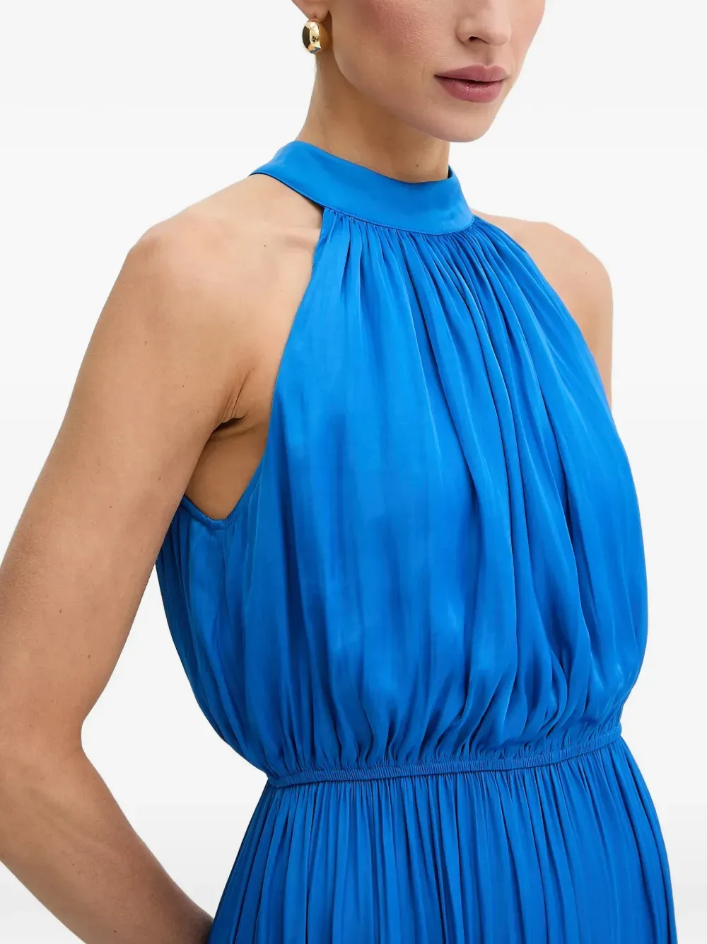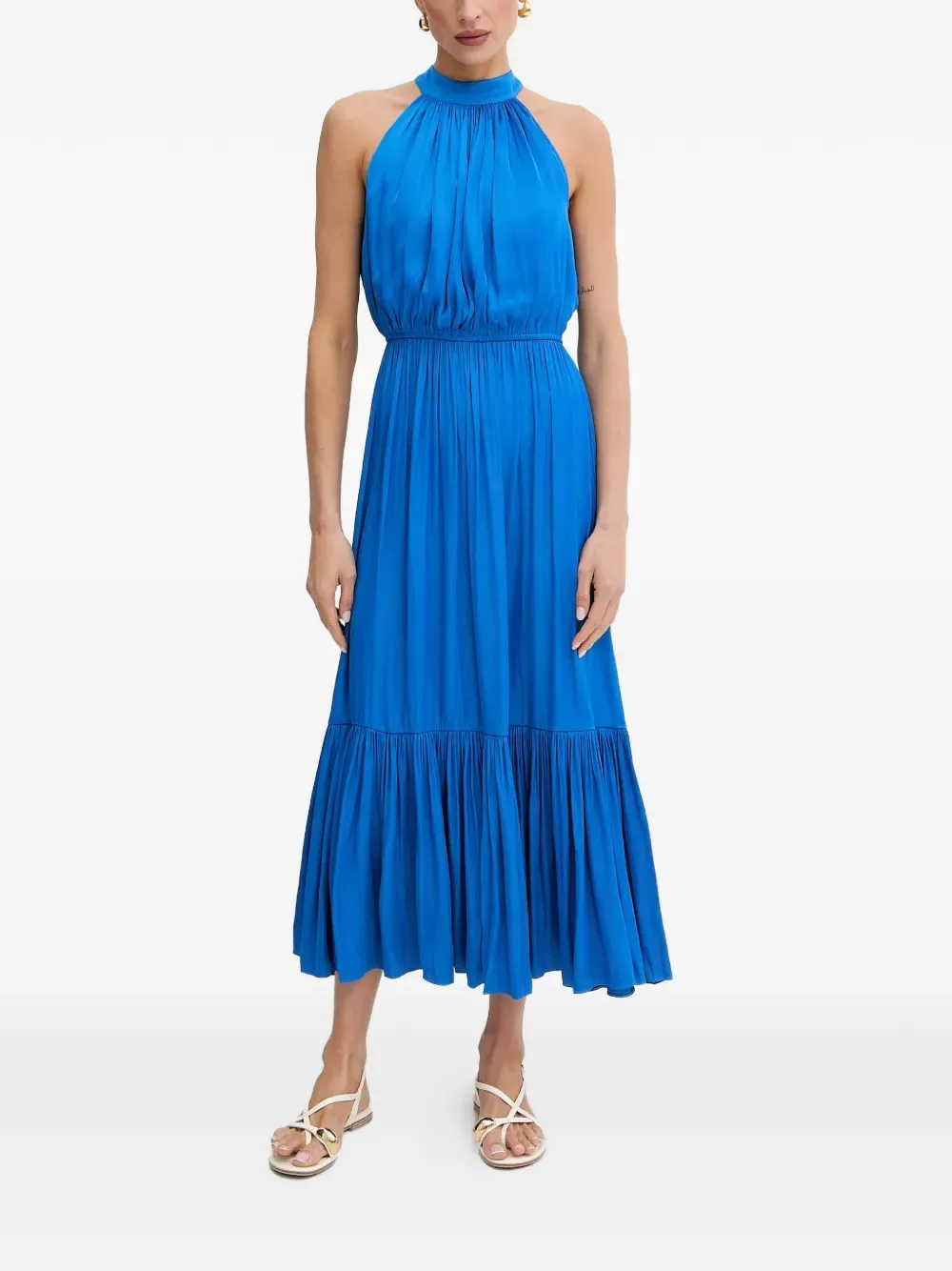 Миди-платье с оборками и воротником-халтер Morgan, синий