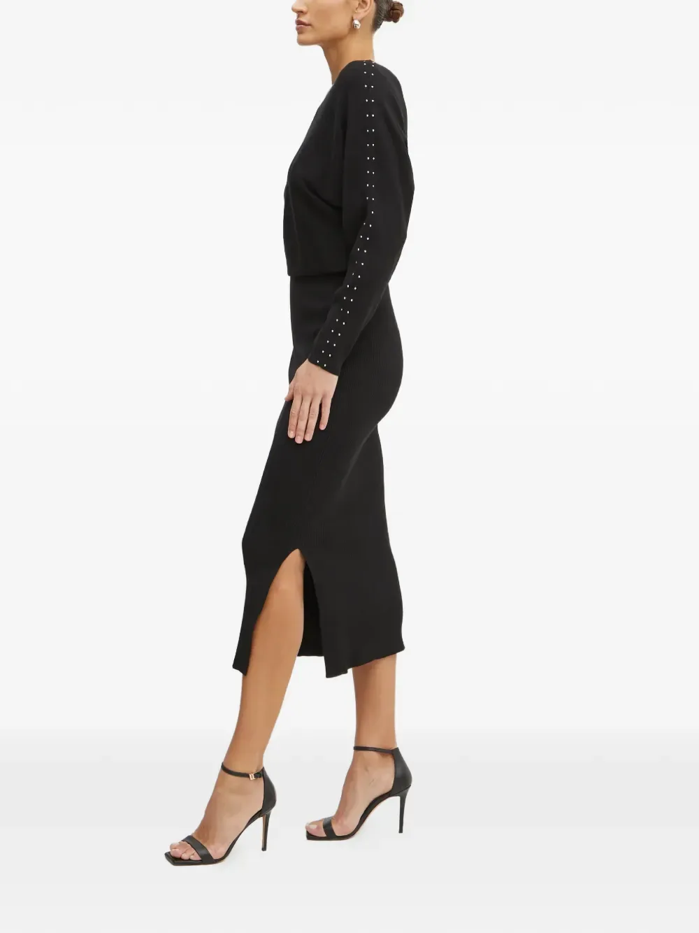 Платье в рубчик с заклепками Morgan, черный