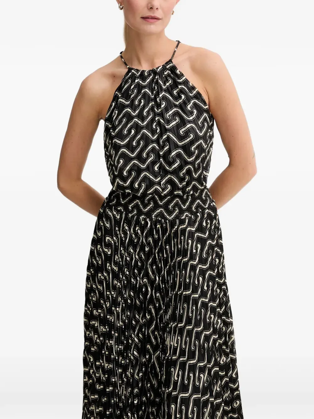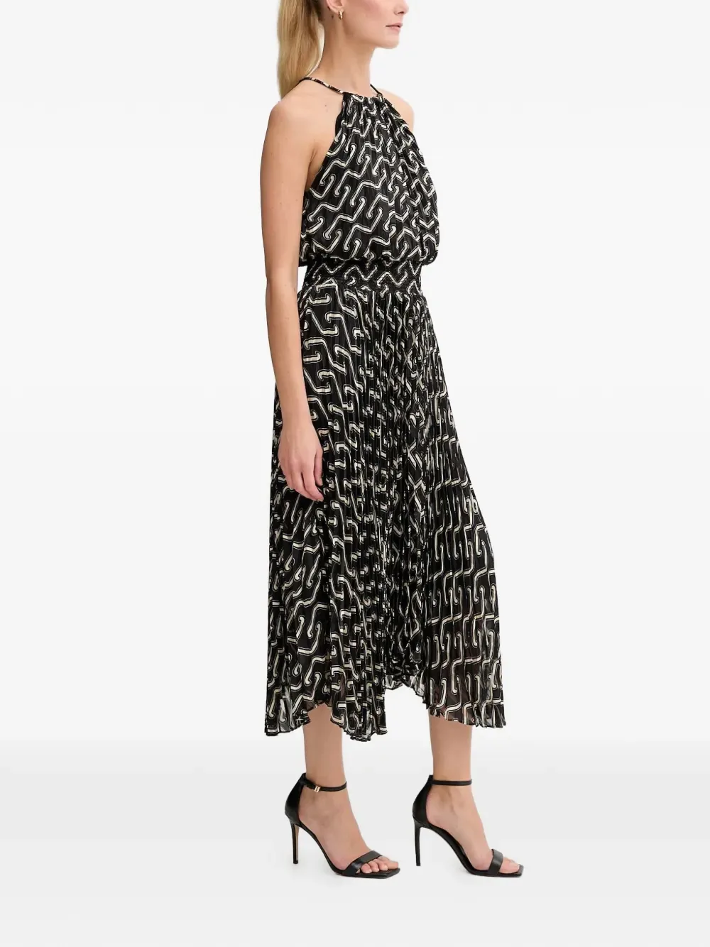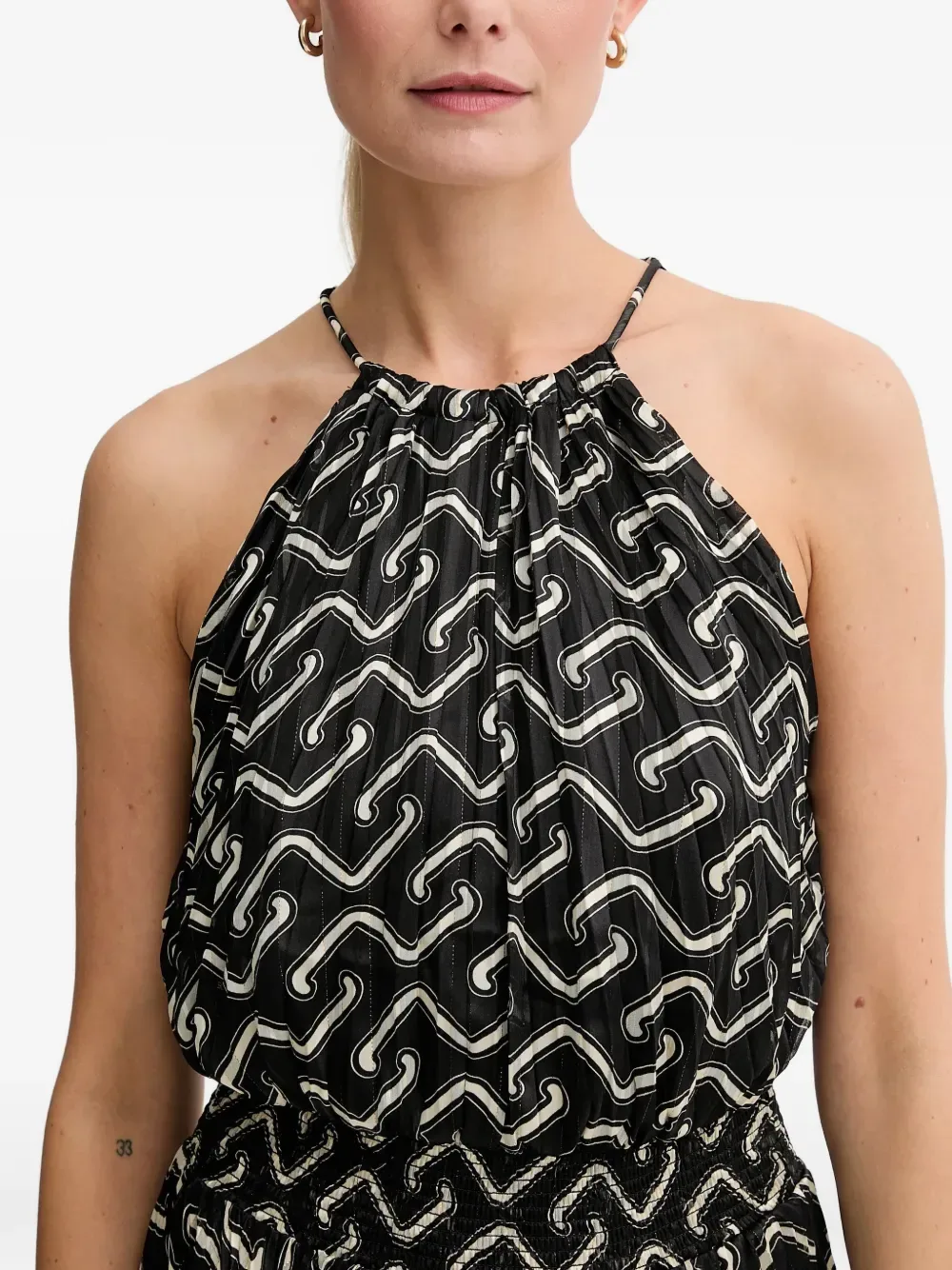 Черно-белая плиссированная юбка с геометрическим принтом, платье на бретельках через шею, без рукавов