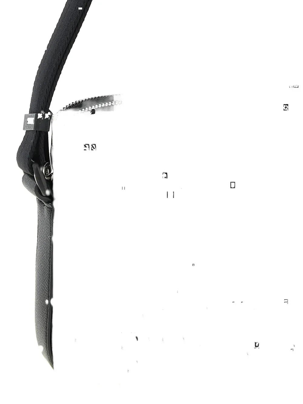 Черная сумка с тисненным логотипом, верхней молнией и регулируемым плечевым ремнем