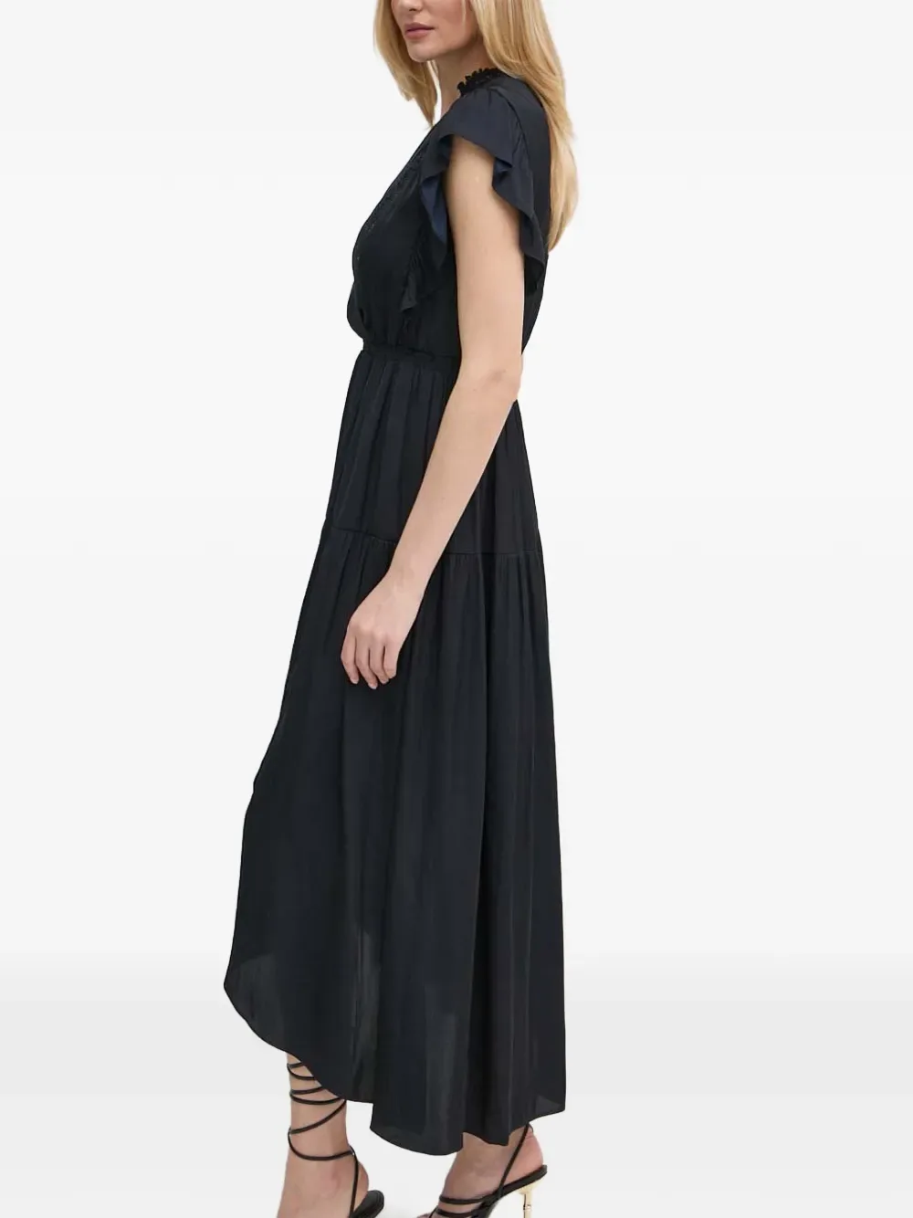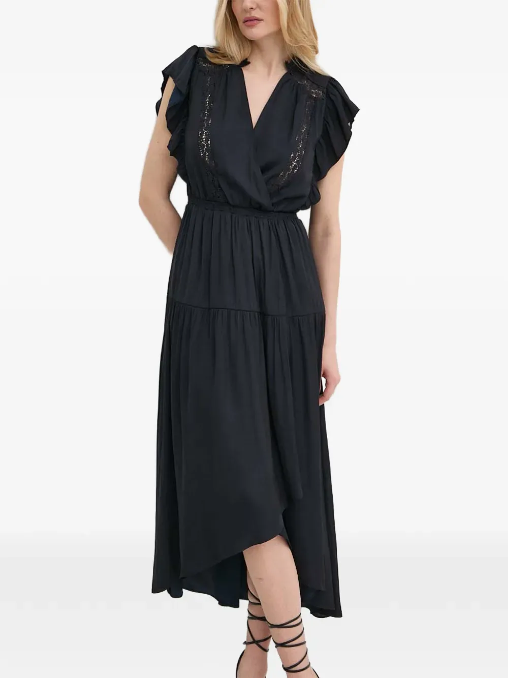 Кружевное миди-платье с оборками Morgan, синий
