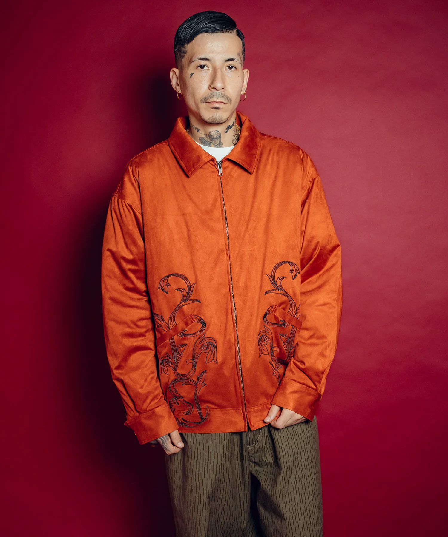 Утепленный топ свободного кроя с яркой вышивкой