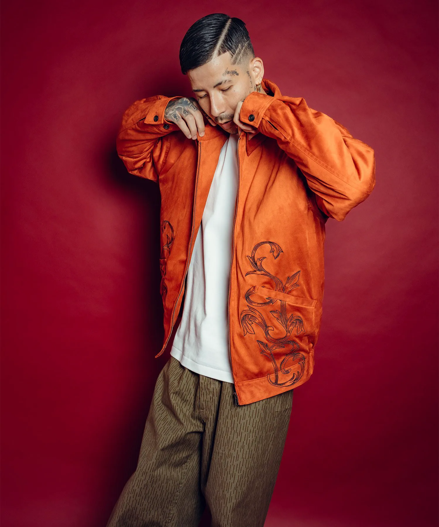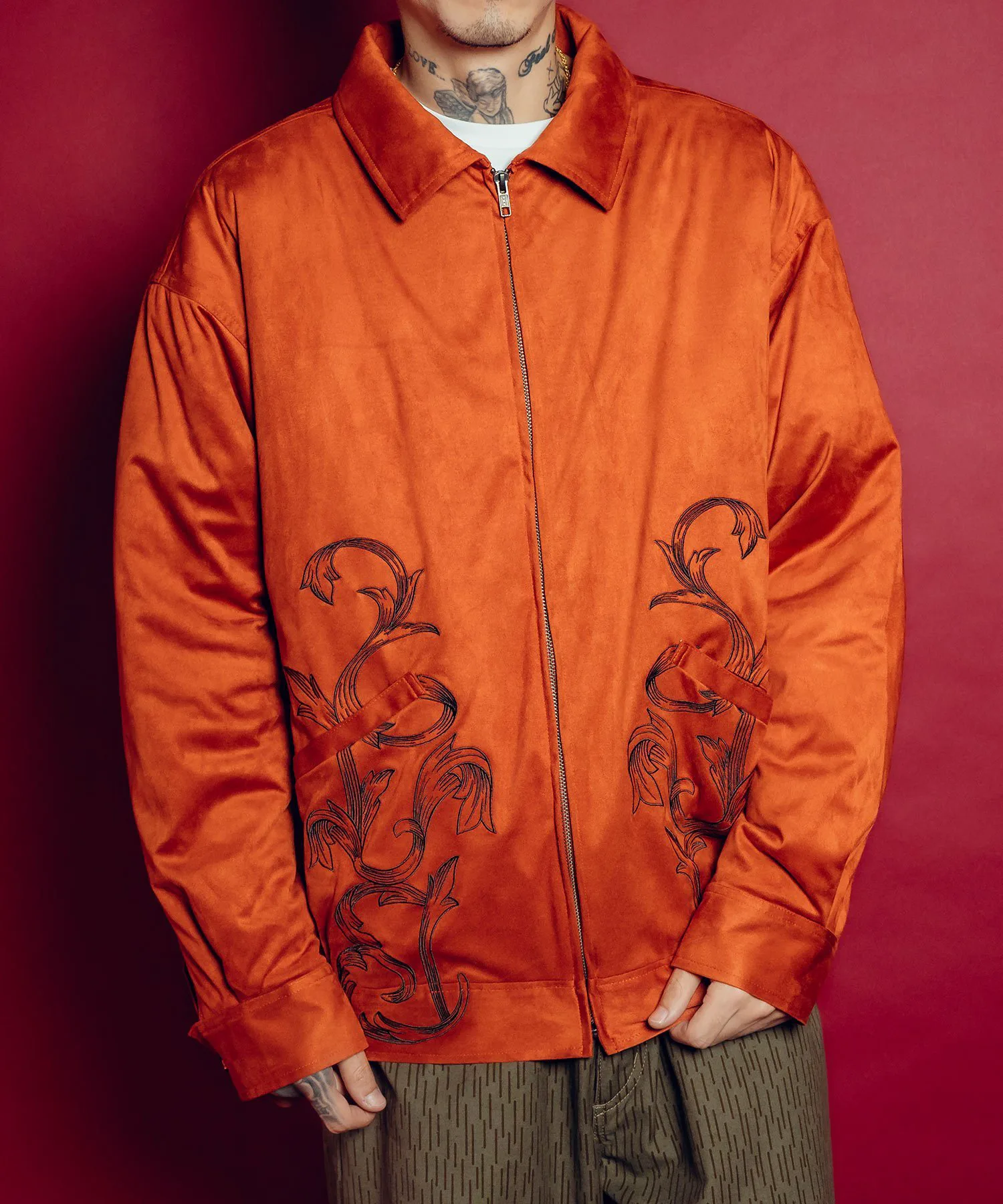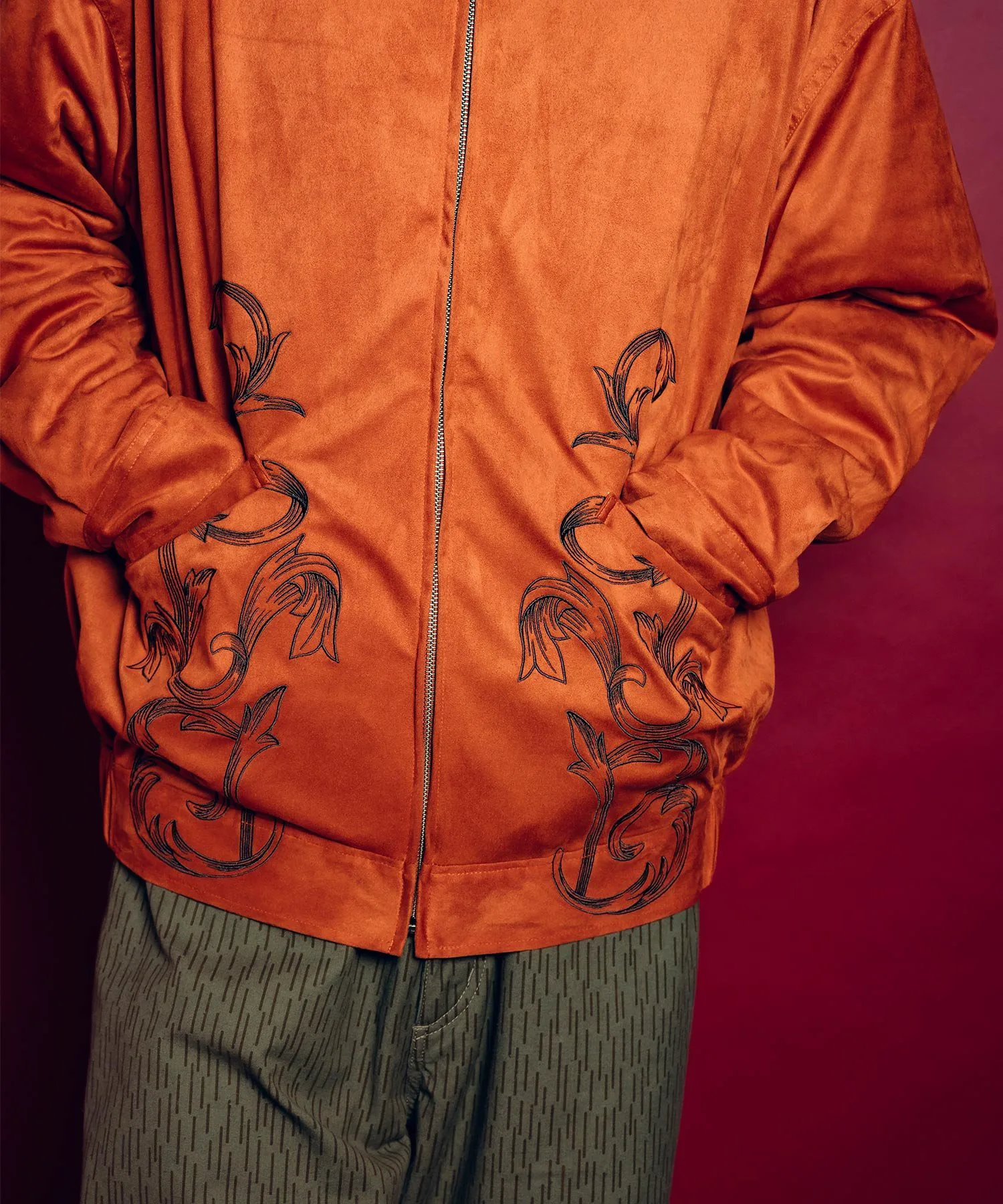 Эта верхняя одежда изготовлена из материала, похожего на замшу, что обеспечивает легкую и удобную посадку.