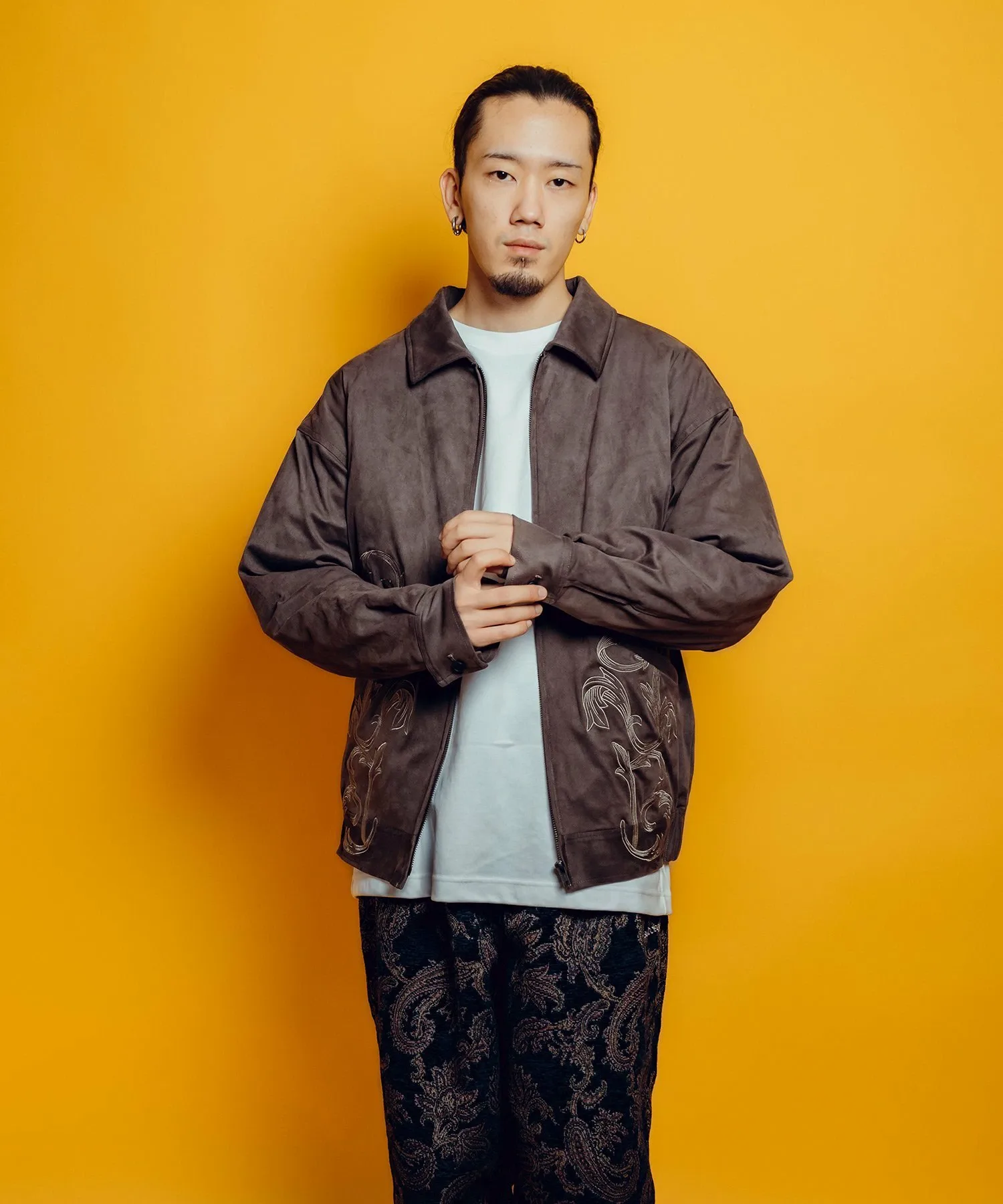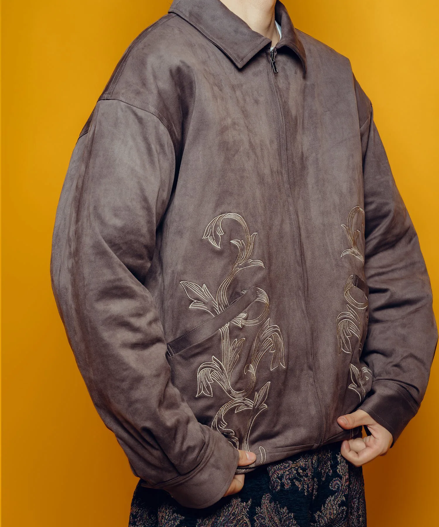 Эта верхняя одежда изготовлена из материала, похожего на замшу, что обеспечивает легкую и удобную посадку.