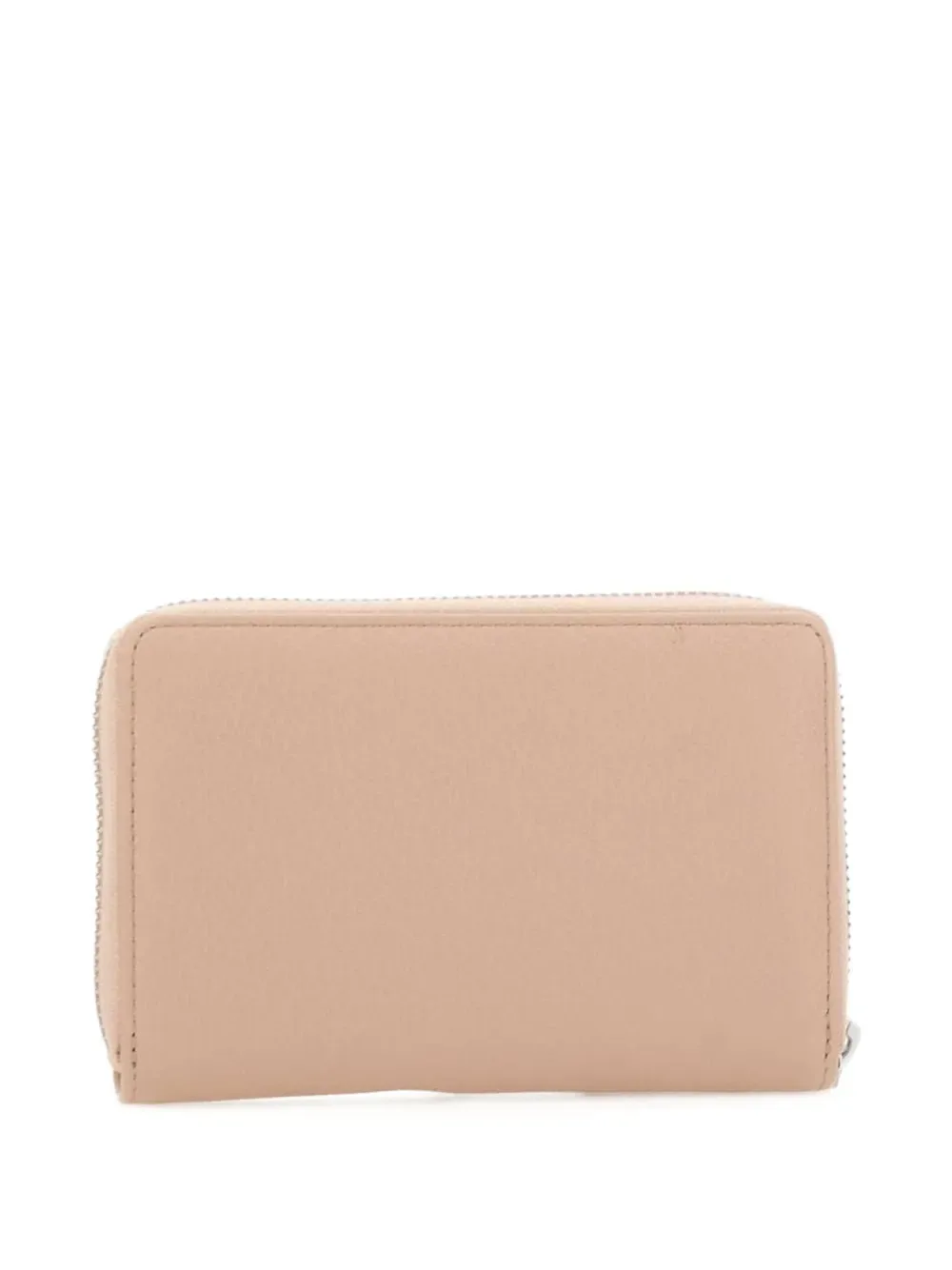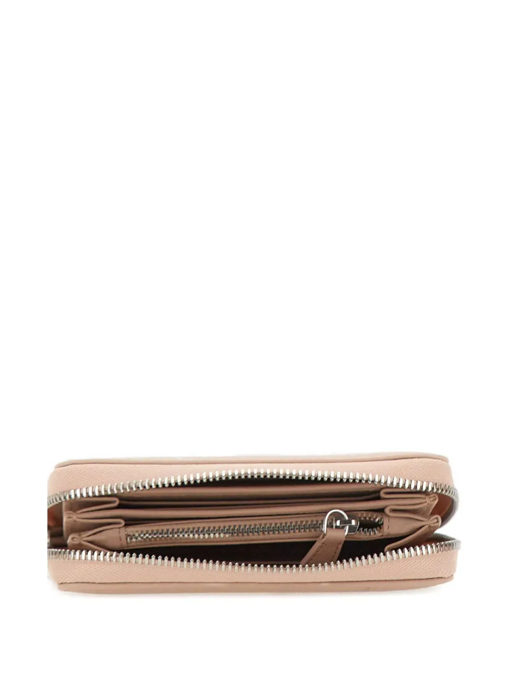 Бежевый кожаный кошелек на молнии с отделениями для купюр и фурнитурой серебристого оттенка