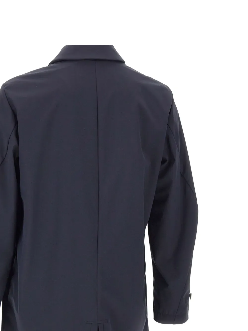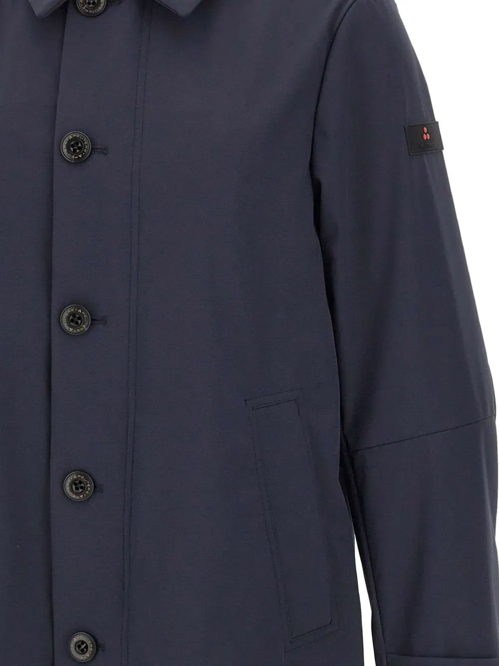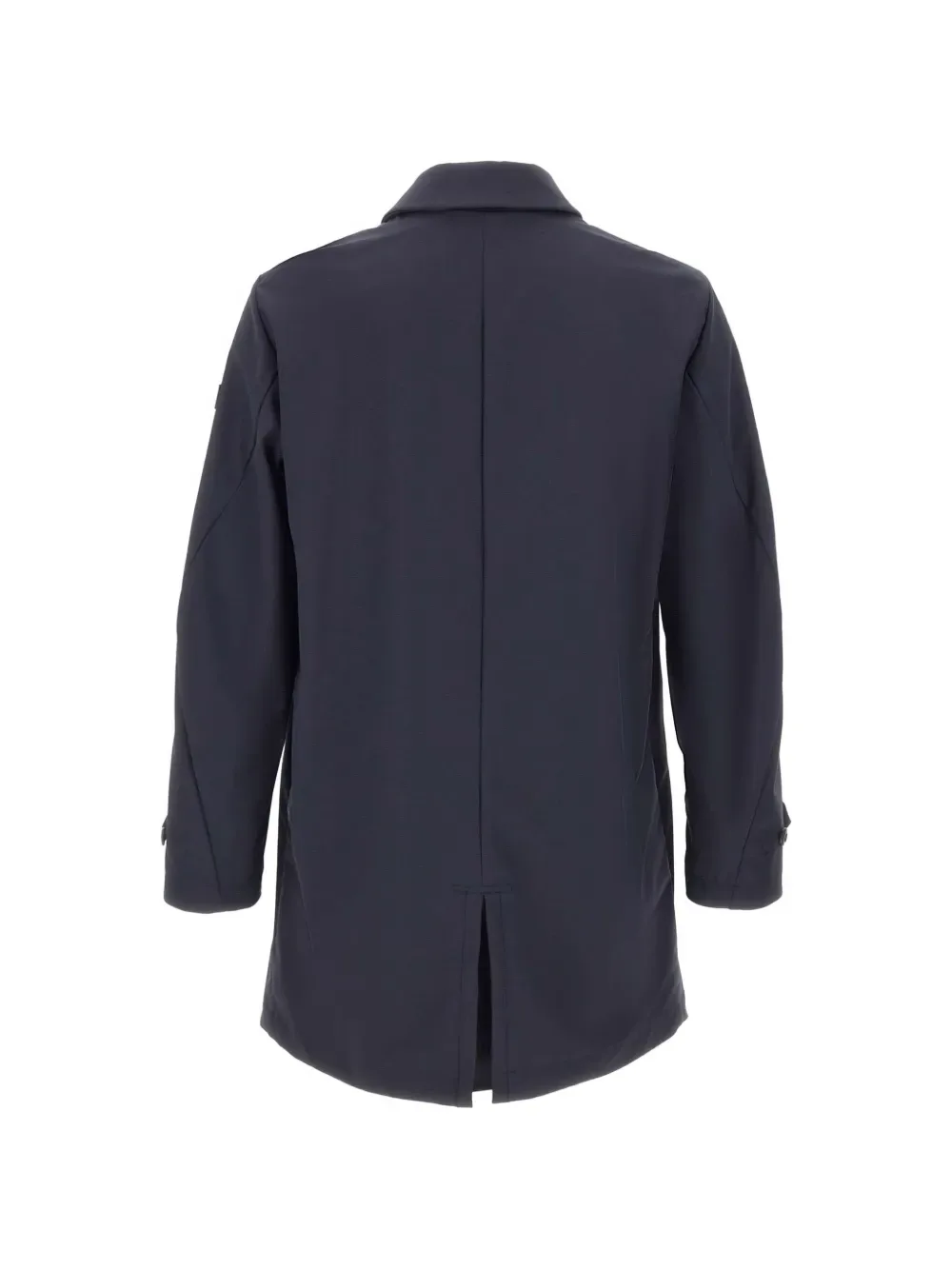 Темно-синий, застежка на пуговицы, прорезные карманы, нашивка с логотипом, отложной воротник поло