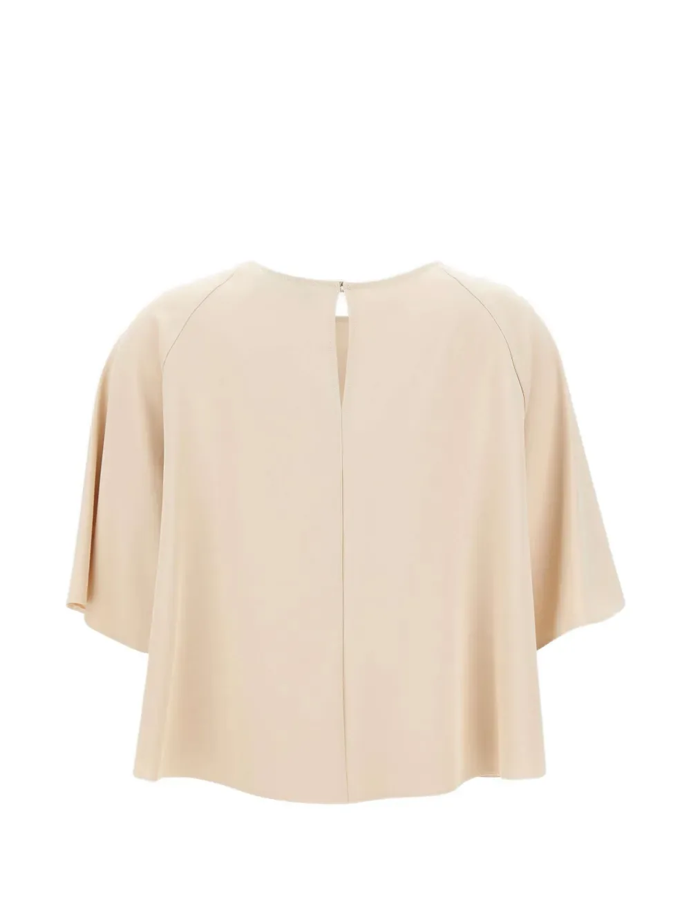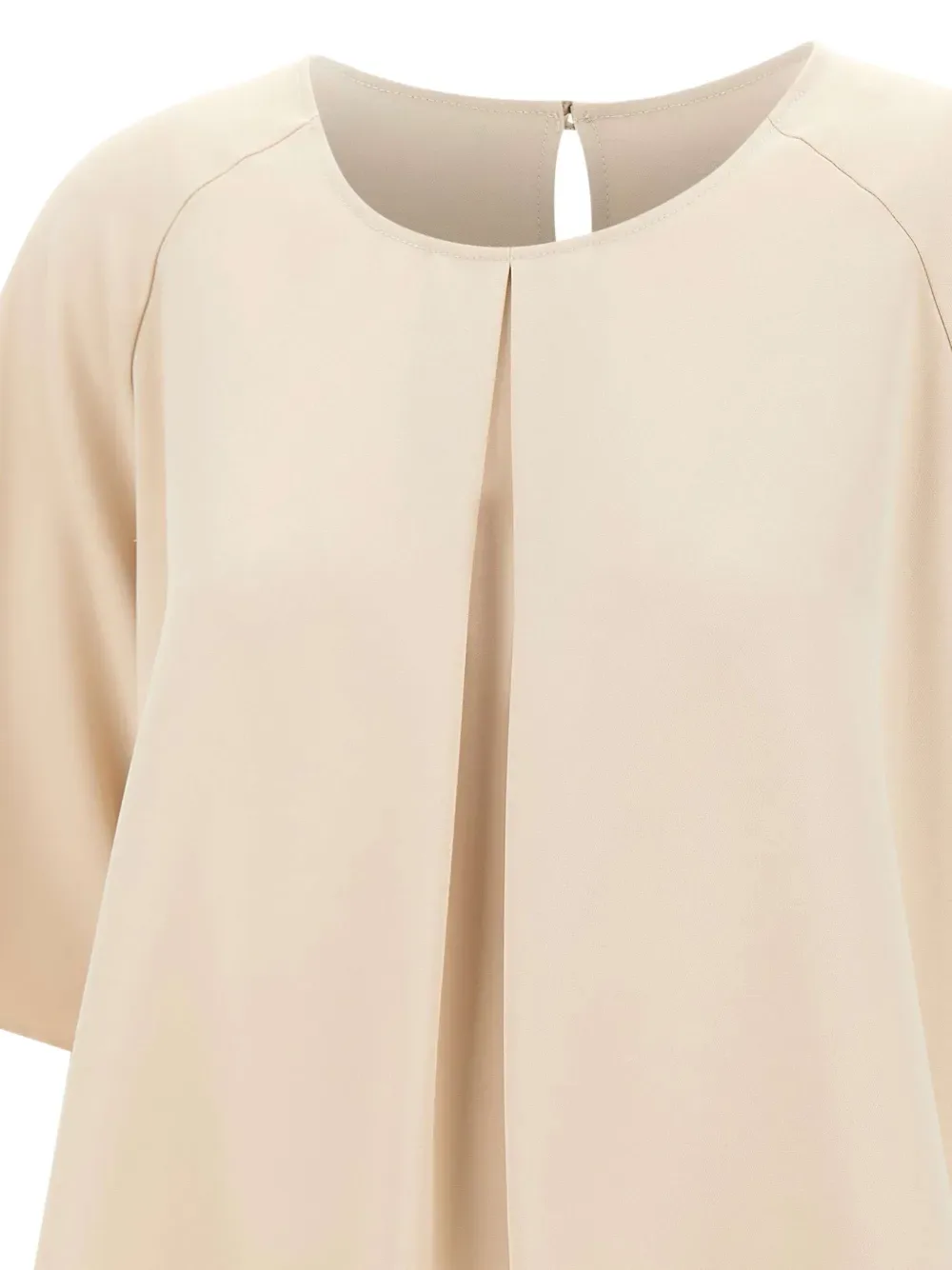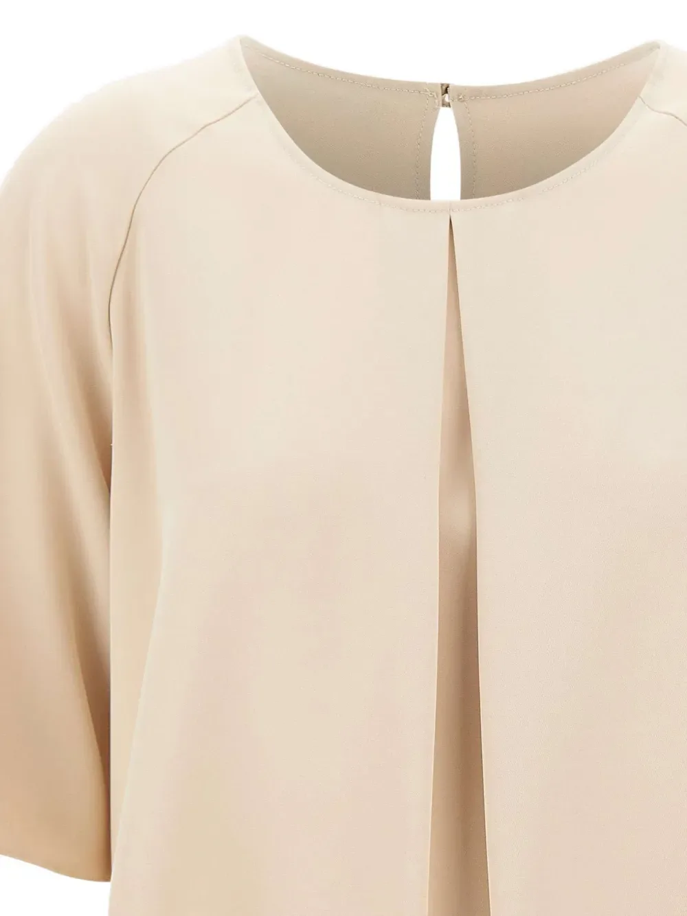 Бежевый круглый вырез, короткие рукава, центральная складка, застежка на одну пуговицу