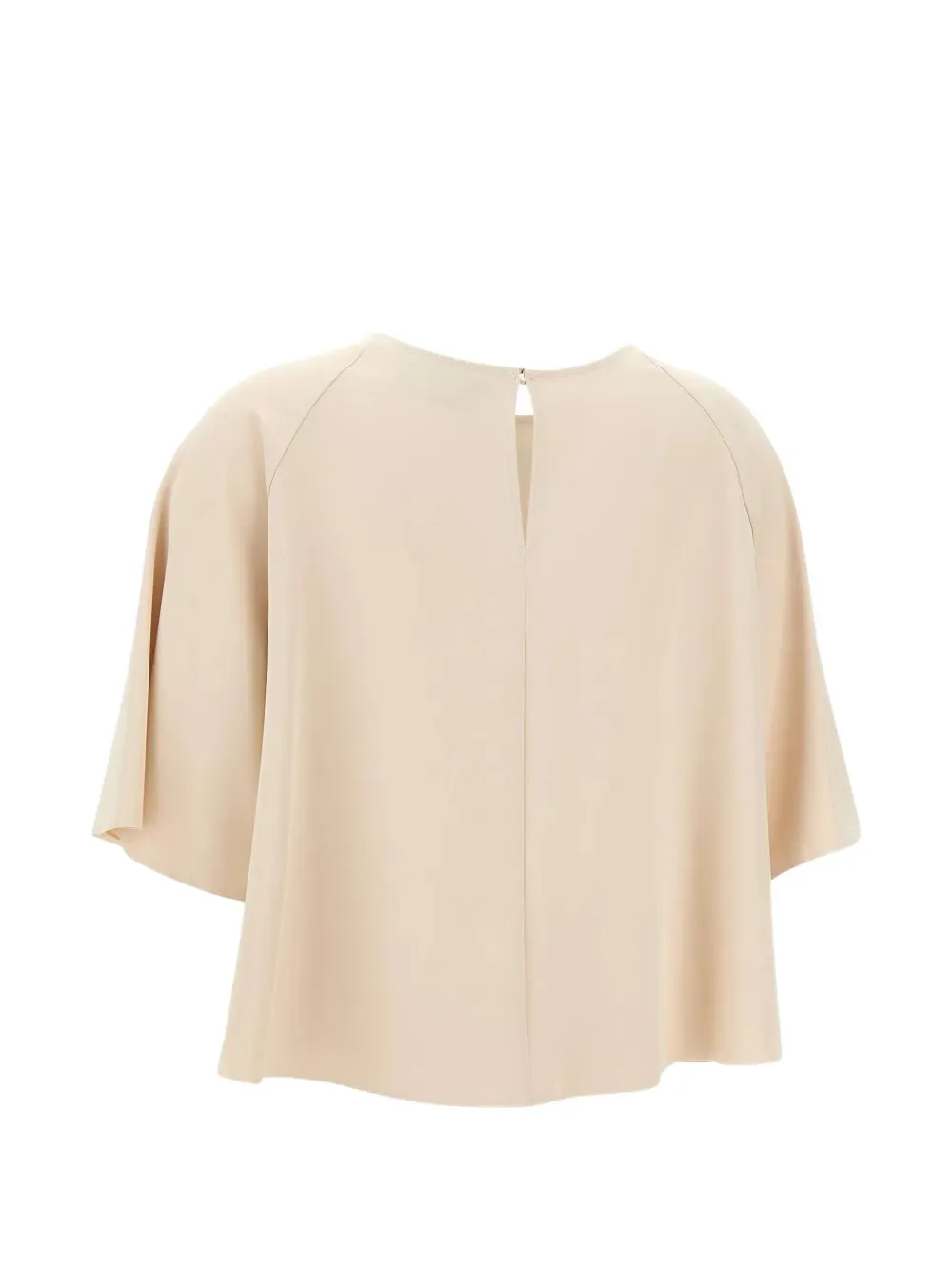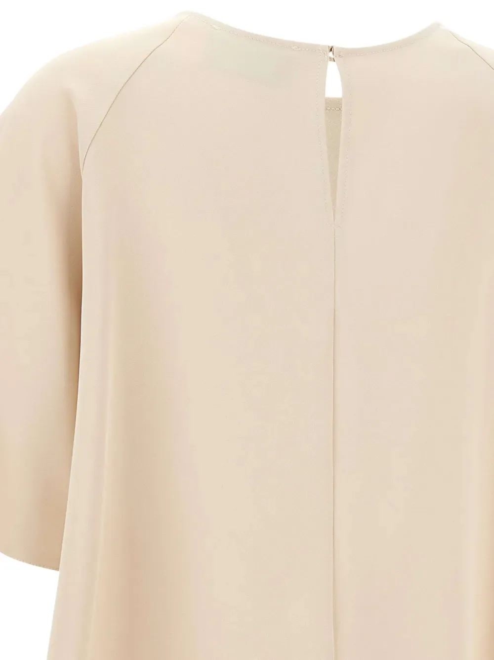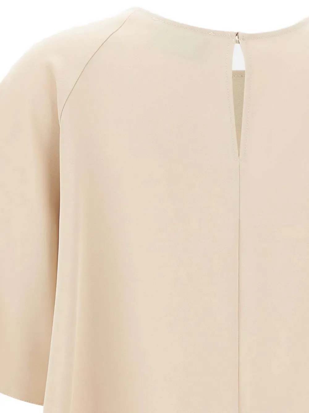 Бежевый круглый вырез, короткие рукава, центральная складка, застежка на одну пуговицу