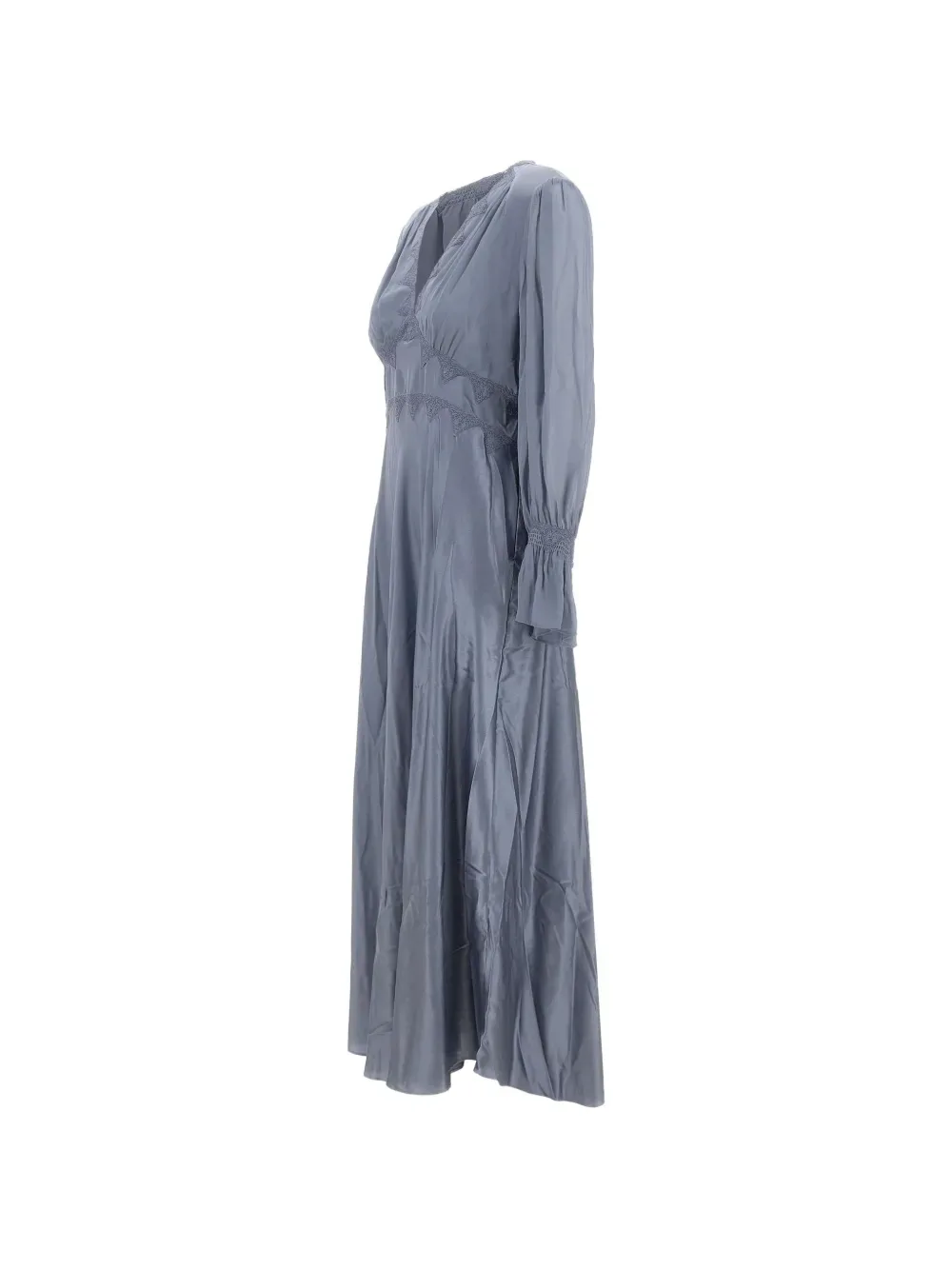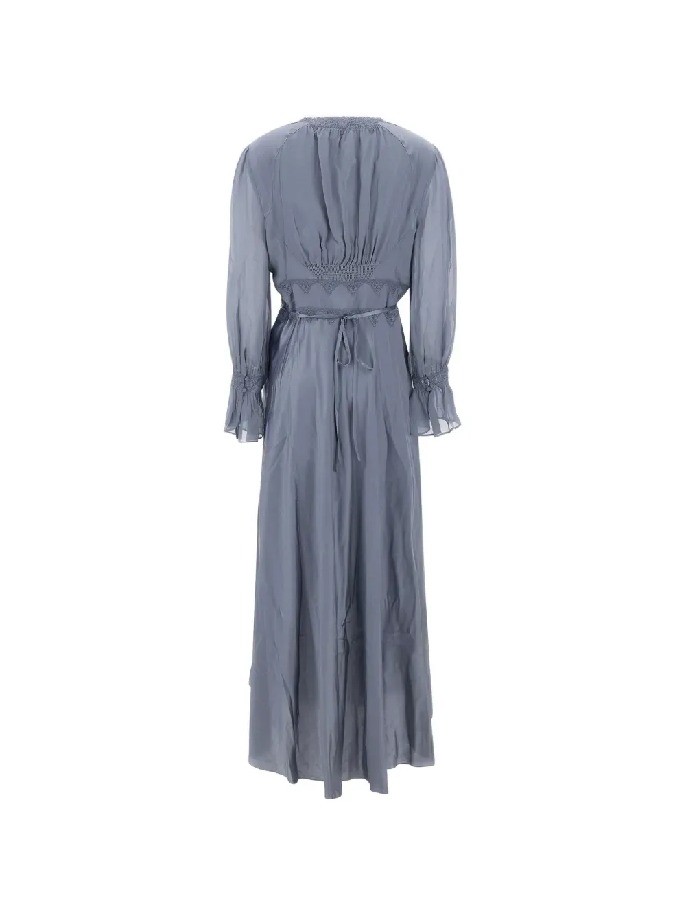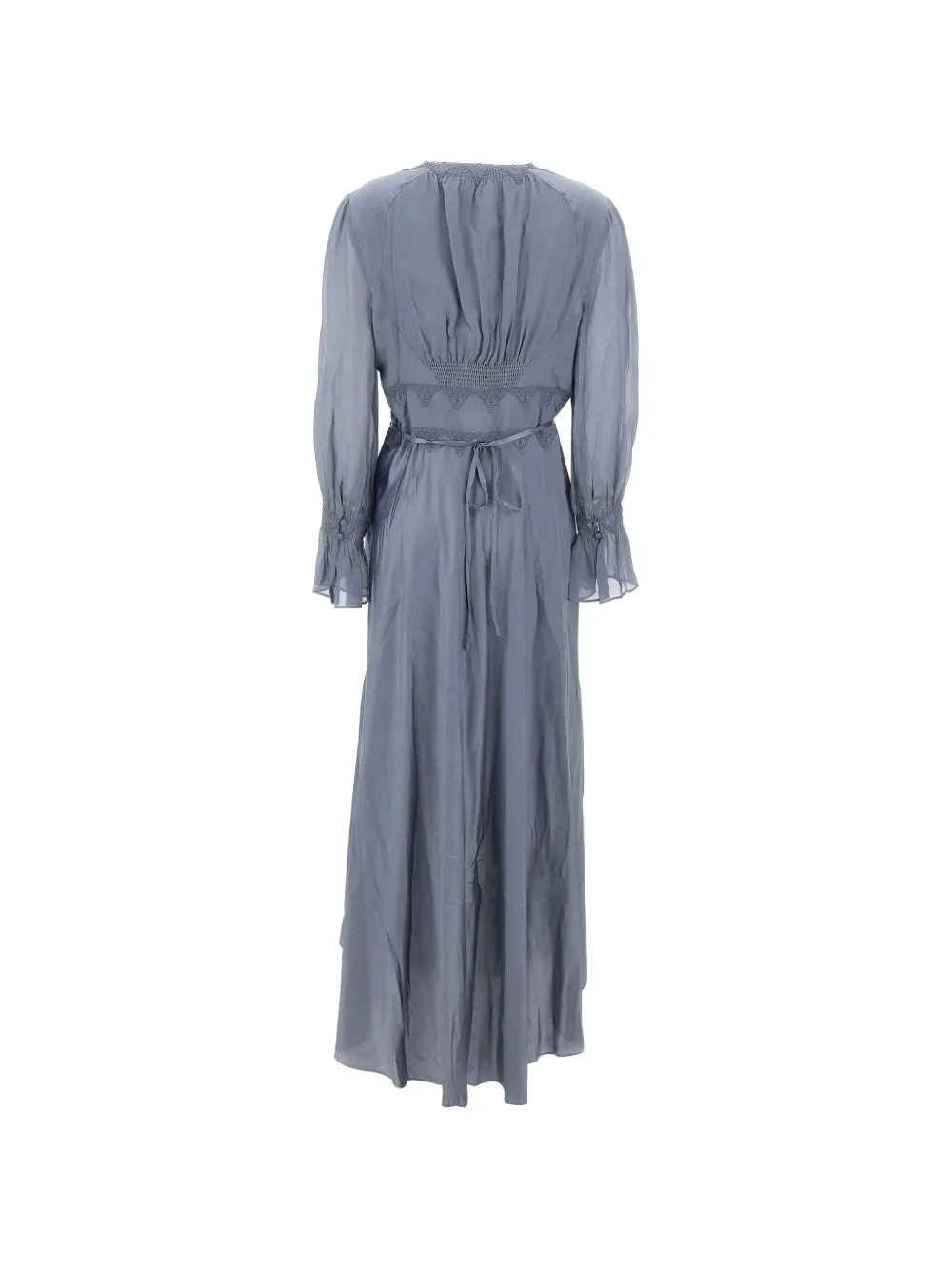 Синяя блузка с V-образным вырезом, длинными рукавами и регулируемым поясом